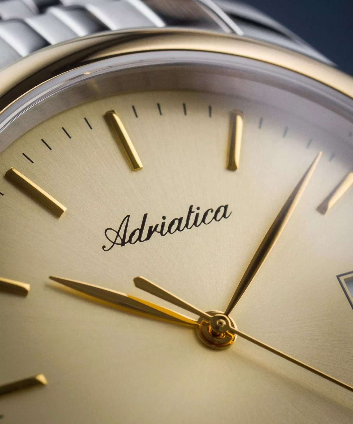 Часы Adriatica A1024.2111Q представляют собой идеальное сочетание элегантности и функциональности, разработанное для современных мужчин. Их стильный циферблат защищен сапфировым стекломСапфировое стеклоПрочный и надёжный материал из кристалла сапфира синтетического происхождения, характеризующийся особой твёрдостью и устойчивостью к царапинам и повреждениям., что придает дополнительную устойчивость к царапинам. Корпус из нержавеющей стали подчеркивает их изысканность и долговечность. Надежный кварцевый механизм с калибром RONDA 515 гарантирует точность времени, а водозащита WR 50 (5 ATM) обеспечивает защиту от воды в различных условиях. Браслет из нержавеющей стали с раскладной застёжкойРаскладная застёжкаТакой тип застёжки используется только на браслетах из металла. Она никогда не раскрывается полностью, происходит разделение на 2 и более частей. Раскладывающая застёжка снизит вероятность потери часов к минимуму., гармонично дополняет общий дизайн и обеспечивает комфортное ношение на запястье. Часы оснащены функцией отображения даты в окошке в положении 3 часа, что добавляет практичности в повседневной жизни. БезельБезельВнешний ободок, закрепляющий стекло. В спортивных часах так называется поворотное кольцо с делениями на циферблате, выполняет роль таймера – замеряет отрезки времени на шкале. Неподвижный безель – элемент декора. Однонаправленно вращающийся безель на дайверских часах позволяет фиксировать моменты погружения и выныривания на поверхность. с PVD-покрытиемPVDУльтратонкое покрытие наносится в технике вакуумного напыления, сочетает в себе нитрид титана особой прочности со слоем золота или оксида хрома. Несёт в себе декоративную или защитную функцию..