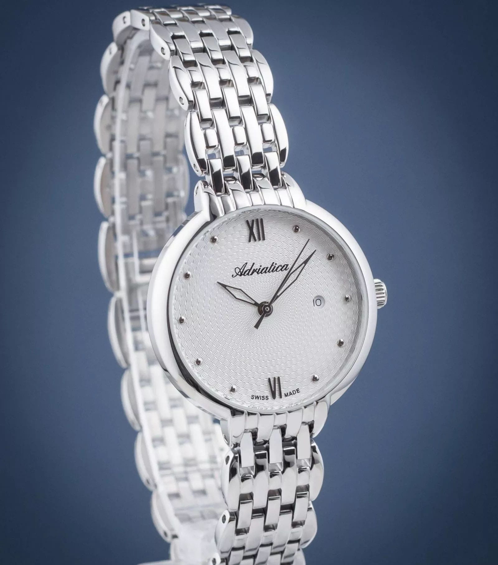 Швейцарские наручные часы Adriatica A3792.5183Q, кварцевый механизм с высокой точностью. Минеральное стеклоМинеральное стеклоМинеральное стекло представляет собой искусственно выращенный минерал кварца. Такое стекло отличается особой устойчивостью к повреждениям и царапинам. Уступает по некоторым качествам сапфировому стеклу. устойчивое к мелким механическим повреждениям. Класс водозащиты: 30 метров, позволит защитить корпус от случайных брызг или капель дождя. Корпус часов изготовлен из стали. Стальной браслет на ювелирной застёжке. Окошко даты находится в положении 3 часа.