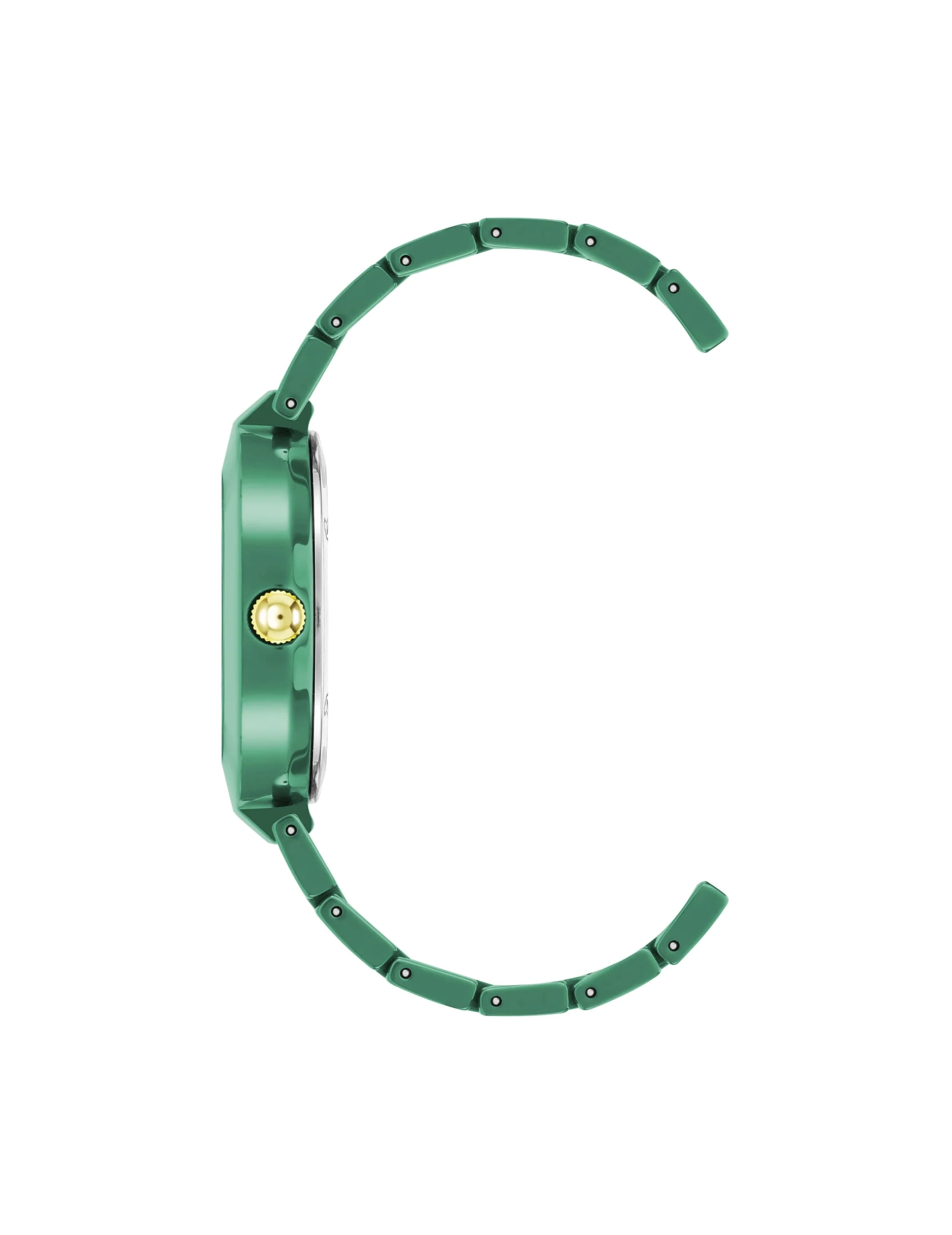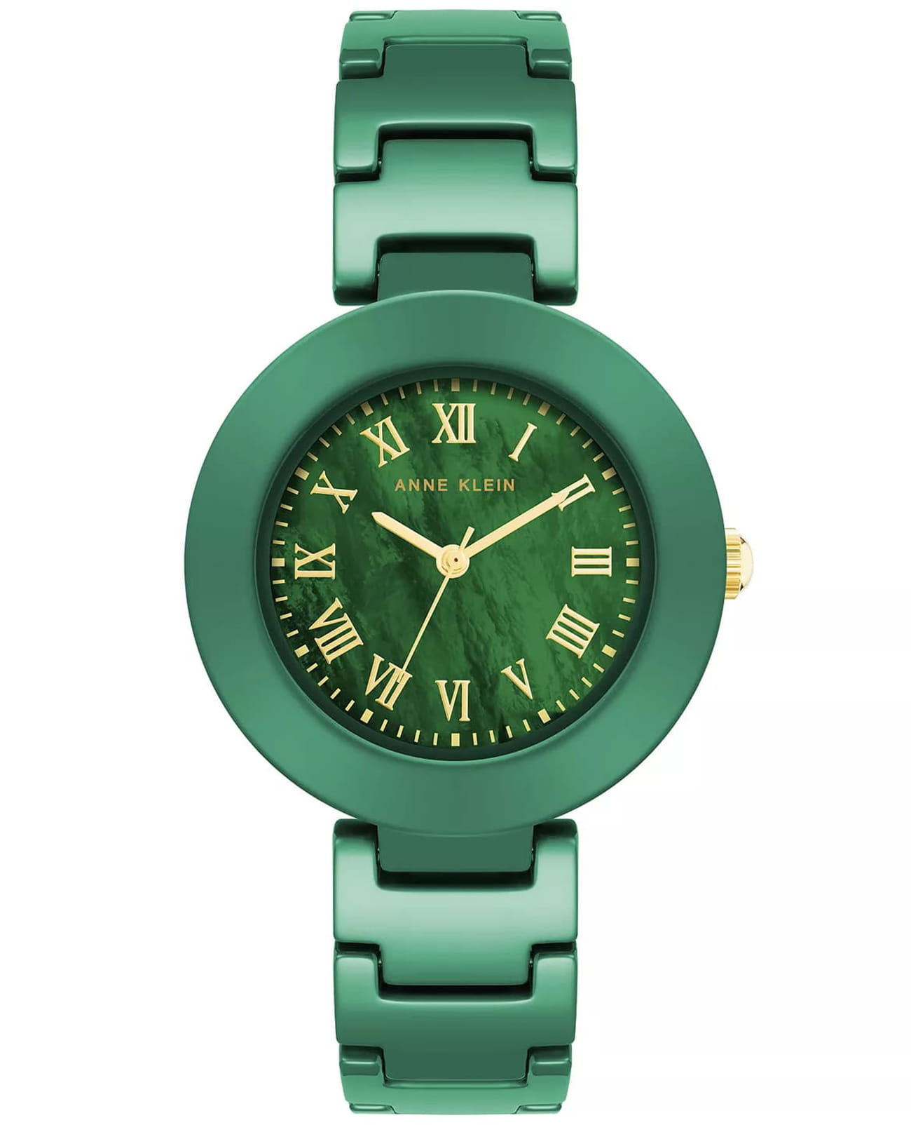Женские американские наручные часы Anne Klein 4036GMGN, кварцевый механизм с высокой точностью. Класс водозащиты: 30 метров, позволит защитить корпус от случайных брызг или капель дождя. Минеральное стеклоМинеральное стеклоМинеральное стекло представляет собой искусственно выращенный минерал кварца. Такое стекло отличается особой устойчивостью к повреждениям и царапинам. Уступает по некоторым качествам сапфировому стеклу. устойчивое к мелким механическим повреждениям. Корпус часов изготовлен из стали. Керамический браслет на раскладной застёжкеРаскладная застёжкаТакой тип застёжки используется только на браслетах из металла. Она никогда не раскрывается полностью, происходит разделение на 2 и более частей. Раскладывающая застёжка снизит вероятность потери часов к минимуму. с кнопками и IP-покрытиемIP-покрытиеМетод ионного напыления. Демонстрирует повышенную устойчивость к истиранию, окислению и химическим веществам. Под воздействием высокого давления и температуры около 1500°C молекулы металла надёжно соединяются с частицами корпуса часов.. Римская индикация времени. Керамический безельБезельВнешний ободок, закрепляющий стекло. В спортивных часах так называется поворотное кольцо с делениями на циферблате, выполняет роль таймера – замеряет отрезки времени на шкале. Неподвижный безель – элемент декора. Однонаправленно вращающийся безель на дайверских часах позволяет фиксировать моменты погружения и выныривания на поверхность..