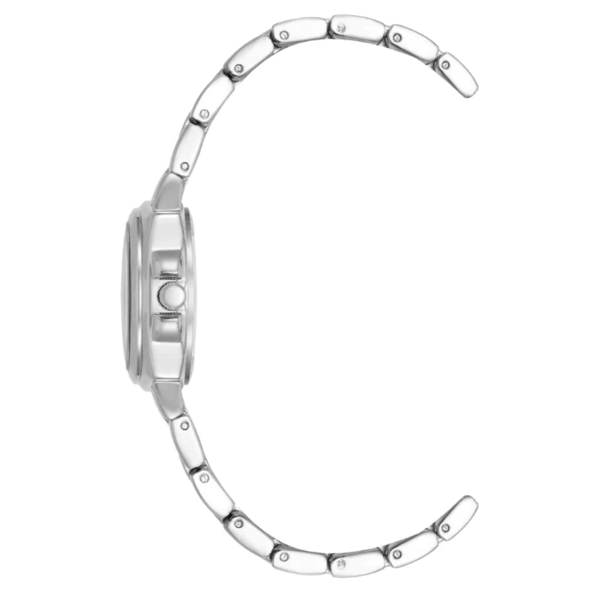 Женские американские часы с минеральным стекломМинеральное стеклоМинеральное стекло представляет собой искусственно выращенный минерал кварца. Такое стекло отличается особой устойчивостью к повреждениям и царапинам. Уступает по некоторым качествам сапфировому стеклу. Anne Klein Metals 4167WTSV, кварцевый механизм с высокой точностью. Класс водозащиты: 30 метров, позволит защитить корпус от случайных брызг или капель дождя. Корпус часов изготовлен из стали. Стальной браслет на раскладной застёжкеРаскладная застёжкаТакой тип застёжки используется только на браслетах из металла. Она никогда не раскрывается полностью, происходит разделение на 2 и более частей. Раскладывающая застёжка снизит вероятность потери часов к минимуму..