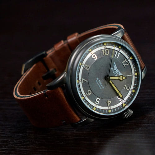 Aviator Douglas V.3.31.5.228.4 — швейцарские часы в классике авиадизайна, сочетающие безупречную читаемость и высокую надёжность. Лимитированная серия. Корпус диаметром 45 мм выполнен из нержавеющей стали с PVD-покрытиемPVDУльтратонкое покрытие наносится в технике вакуумного напыления, сочетает в себе нитрид титана особой прочности со слоем золота или оксида хрома. Несёт в себе декоративную или защитную функцию. черного цвета. Накладные метки выполнены в виде арабских цифр. Часовые метки и стрелки покрыты люминесцентным покрытиемЛюминесцентное покрытиеПозволяет считывать показания времени в темноте. Производители наносят на стрелки, часовые индексы, безель или поверхность циферблата светонакопительный состав, дающий холодное свечение. Superluminova, позволяющим легко определять время даже в тёмное время суток. Поверхность защищена прочным сапфировым стекломСапфировое стеклоПрочный и надёжный материал из кристалла сапфира синтетического происхождения, характеризующийся особой твёрдостью и устойчивостью к царапинам и повреждениям. с антибликовым покрытием, устойчивым к царапинам. Сердце модели — швейцарский механизм Sellita SW 200, известный своей точностью и долговечностью. Калибр управляется регулятором Etachron, который обеспечивает высокую точность хода как на земле, так и над землей. Водозащита 100 метров, позволит плавать, нырять и заниматься другими водными видами спорта. Завинчивающаяся головка и задняя крышка обеспечивают уверенную ударопрочностьУдаропрочный корпусМеханизм заключён в корпус, выполненный из современных материалов, устойчивых к ударам, механическим повреждениям и падению с высоты: инновационный пластик, карбон, нержавеющая сталь, титан. и надёжную защиту от влаги и пыли. В механизме 26 камней, запас хода 38 часов. Модель дополнена кожаным ремешком с выразительной текстурой и классическим стилем, закреплённым с помощью классической застежки — для максимального комфорта и лёгкости в повседневном использовании. Прозрачная задняя крышка украшена имитацией функции контроля управления хвоста самолета. Ротор механизма указывает на градусы, как в авиационном приборе триммер. Aviator — это образец лётной точности, инженерной чёткости и сдержанной роскоши, идеально подходящий для тех, кто ценит функциональность и уверенность в каждом элементе.