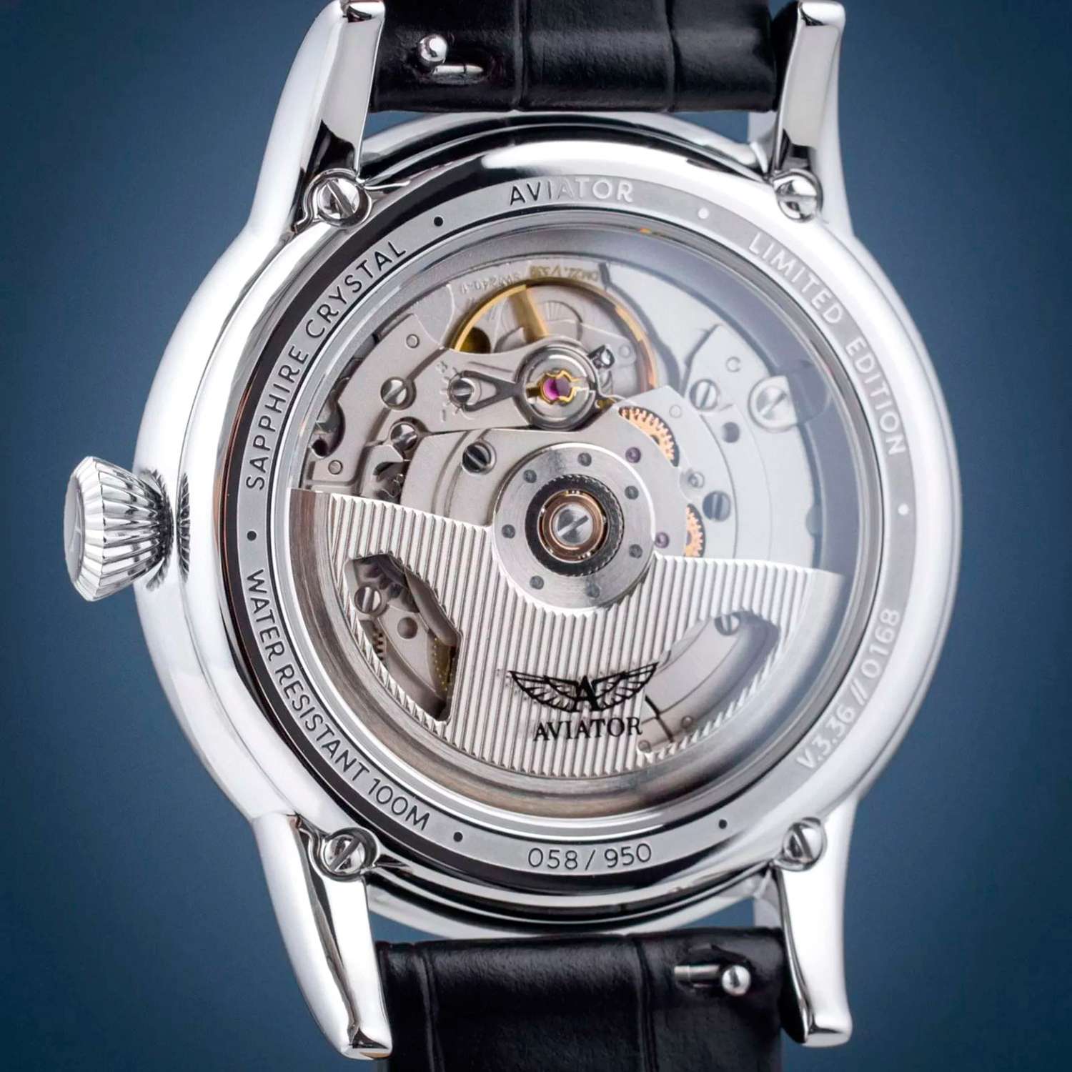 Aviator Douglas Day Date V.3.36.0.284.4— швейцарские часы в классике авиадизайна, сочетающие безупречную читаемость и высокую надёжность. Лимитированная серия. Корпус диаметром 41 мм выполнен из нержавеющей стали 316L. Накладные метки выполнены в виде арабских цифр. Окошко даты находится в положении 6 часов. День недели находится в положении 12 часов. Часовые метки и стрелки покрыты люминесцентным покрытиемЛюминесцентное покрытиеПозволяет считывать показания времени в темноте. Производители наносят на стрелки, часовые индексы, безель или поверхность циферблата светонакопительный состав, дающий холодное свечение. Superluminova, позволяющим легко определять время даже в тёмное время суток. Поверхность защищена прочным сапфировым стекломСапфировое стеклоПрочный и надёжный материал из кристалла сапфира синтетического происхождения, характеризующийся особой твёрдостью и устойчивостью к царапинам и повреждениям. с антибликовым покрытием, устойчивым к царапинам. Сердце модели — швейцарский механизм Sellita SW 240-2, известный своей точностью и долговечностью. Водозащита 100 метров, позволит плавать, нырять и заниматься другими водными видами спорта. Завинчивающаяся головка и задняя крышка обеспечивают уверенную ударопрочностьУдаропрочный корпусМеханизм заключён в корпус, выполненный из современных материалов, устойчивых к ударам, механическим повреждениям и падению с высоты: инновационный пластик, карбон, нержавеющая сталь, титан. и надёжную защиту от влаги и пыли. В механизме 26 камней, запас хода до 41 час. Модель дополнена кожаным ремешком с выразительной текстурой и классическим стилем, закреплённым с помощью застёжке-бабочке с кнопкамиЗастёжка "бабочка"Такой вид застёжки дополняется предохранителями, помогающими избежать случайного раскрытия браслета. Обладают изящным исполнением. — для максимального комфорта и лёгкости в повседневном использовании. Ротор механизма с заклепанными элементами и вырезанными окнами напоминает фюзеляж самолета. Aviator — это образец лётной точности, инженерной чёткости и сдержанной роскоши, идеально подходящий для тех, кто ценит функциональность и уверенность в каждом элементе.