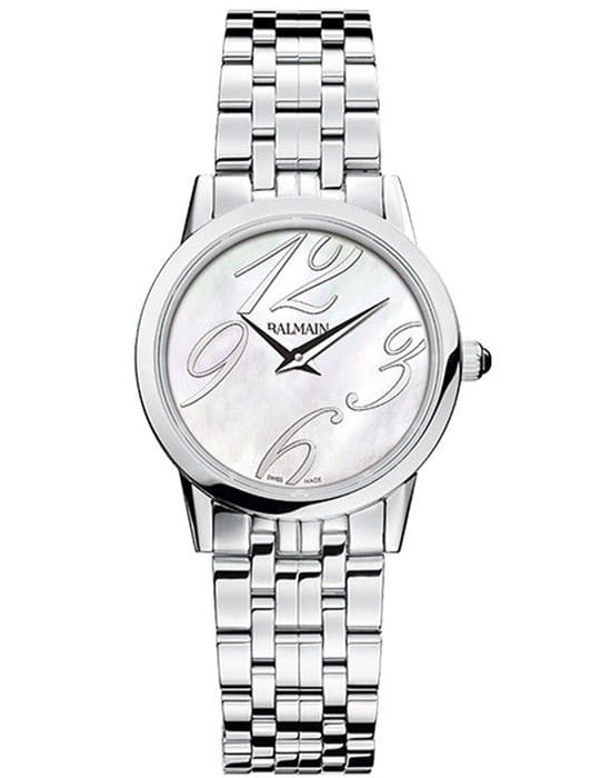 Женские часы Balmain De Balmainia B8551.33.84 кварцевый механизм с высокой точностью. Сапфировое стеклоСапфировое стеклоПрочный и надёжный материал из кристалла сапфира синтетического происхождения, характеризующийся особой твёрдостью и устойчивостью к царапинам и повреждениям. устойчивое к появлению царапин, обладающее высокой прозрачностью. Корпус изготовлен из нержавеющей стали. Класс водозащиты: 50 метров, позволит защитить корпус от случайных брызг или капель дождя. Стальной браслет на застёжке «бабочка» с кнопкамиЗастёжка "бабочка"Такой вид застёжки дополняется предохранителями, помогающими избежать случайного раскрытия браслета. Обладают изящным исполнением. .