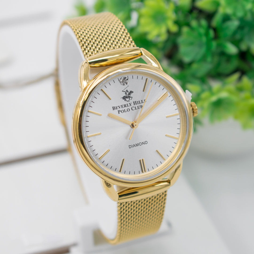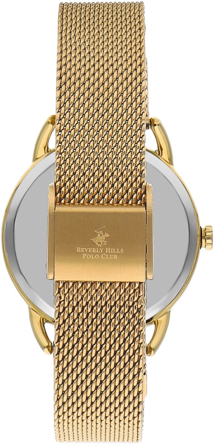 Американские женские часы с минеральным стеклом Beverly Hills Polo Club BP3299C.130 с минеральным стекломМинеральное стеклоМинеральное стекло представляет собой искусственно выращенный минерал кварца. Такое стекло отличается особой устойчивостью к повреждениям и царапинам. Уступает по некоторым качествам сапфировому стеклу., кварцевый механизм с высокой точностью. Класс водозащиты: 50 метров, позволит защитить корпус от случайных брызг или капель дождя. Корпус и браслет часов изготовлены из стали с IP-покрытиемIP-покрытиеМетод ионного напыления. Демонстрирует повышенную устойчивость к истиранию, окислению и химическим веществам. Под воздействием высокого давления и температуры около 1500°C молекулы металла надёжно соединяются с частицами корпуса часов.. Браслет с раскладной застёжкойРаскладная застёжкаТакой тип застёжки используется только на браслетах из металла. Она никогда не раскрывается полностью, происходит разделение на 2 и более частей. Раскладывающая застёжка снизит вероятность потери часов к минимуму..