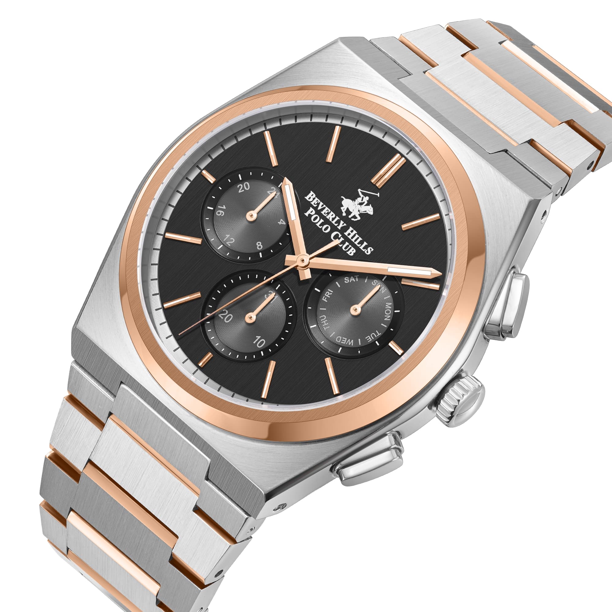 Часы Beverly Hills Polo Club BP3381X.550 — это гармоничное сочетание силы, стиля и современных технологий. Выполненные из высококачественной нержавеющей стали, минеральное стеклоМинеральное стеклоМинеральное стекло представляет собой искусственно выращенный минерал кварца. Такое стекло отличается особой устойчивостью к повреждениям и царапинам. Уступает по некоторым качествам сапфировому стеклу., защищающее циферблат, надёжно оберегает его от царапин, сохраняя яркий блеск. БезельБезельВнешний ободок, закрепляющий стекло. В спортивных часах так называется поворотное кольцо с делениями на циферблате, выполняет роль таймера – замеряет отрезки времени на шкале. Неподвижный безель – элемент декора. Однонаправленно вращающийся безель на дайверских часах позволяет фиксировать моменты погружения и выныривания на поверхность. с PVD-покрытиемPVDУльтратонкое покрытие наносится в технике вакуумного напыления, сочетает в себе нитрид титана особой прочности со слоем золота или оксида хрома. Несёт в себе декоративную или защитную функцию.. С уровнем водозащиты до 100 метров, эти часы готовы сопровождать вас в любых водных приключениях: будь то плавание, ныряние или активные занятия спортом. Стальной браслет с PVD-покрытиемPVDУльтратонкое покрытие наносится в технике вакуумного напыления, сочетает в себе нитрид титана особой прочности со слоем золота или оксида хрома. Несёт в себе декоративную или защитную функцию. на застёжке-бабочке с кнопкамиЗастёжка "бабочка"Такой вид застёжки дополняется предохранителями, помогающими избежать случайного раскрытия браслета. Обладают изящным исполнением. . На циферблате отображается не только текущее время, но и такие полезные функции, как дата, день недели, 24-часовой формат.Стрелки с люминесцентным покрытиемЛюминесцентное покрытиеПозволяет считывать показания времени в темноте. Производители наносят на стрелки, часовые индексы, безель или поверхность циферблата светонакопительный состав, дающий холодное свечение. придают удобство в использовании в темное время суток. Эта модель — истинное воплощение философии Beverly Hills Polo Club: сочетание высоких стандартов качества и неподражаемого стиля, создающее аксессуар, который станет вашим верным компаньоном в повседневной жизни.