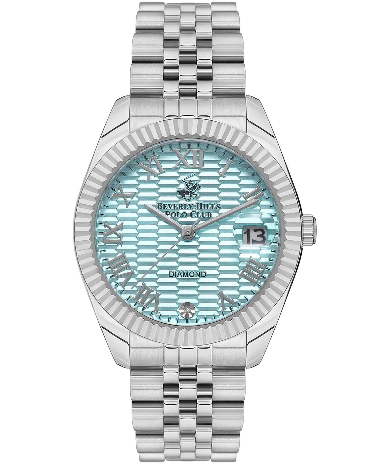 Женские наручные часы Beverly Hills Polo Club BP3582C.300 с надёжным автоматическим механизмом. Минеральное стеклоМинеральное стеклоМинеральное стекло представляет собой искусственно выращенный минерал кварца. Такое стекло отличается особой устойчивостью к повреждениям и царапинам. Уступает по некоторым качествам сапфировому стеклу. устойчивое к мелким механическим повреждениям. Корпус часов изготовлен из нержавеющей стали. Стальной браслет на раскладной застёжкеРаскладная застёжкаТакой тип застёжки используется только на браслетах из металла. Она никогда не раскрывается полностью, происходит разделение на 2 и более частей. Раскладывающая застёжка снизит вероятность потери часов к минимуму.. Окошко даты находится в положении 3 часа. Класс водозащиты: 50 метров, позволит защитить корпус от случайных брызг или капель дождя. Циферблат инкрустирован синтетическим бриллиантом.