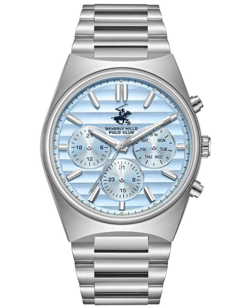 Часы Beverly Hills Polo Club BP3744X.300 — это гармоничное сочетание силы, стиля и современных технологий. Выполненные из высококачественной нержавеющей стали, минеральное стеклоМинеральное стеклоМинеральное стекло представляет собой искусственно выращенный минерал кварца. Такое стекло отличается особой устойчивостью к повреждениям и царапинам. Уступает по некоторым качествам сапфировому стеклу., защищающее циферблат, надёжно оберегает его от царапин, сохраняя яркий блеск. С уровнем водозащиты до 100 метров, эти часы готовы сопровождать вас в любых водных приключениях: будь то плавание, ныряние или активные занятия спортом. Стальной браслет на застёжке-бабочке с кнопкамиЗастёжка "бабочка"Такой вид застёжки дополняется предохранителями, помогающими избежать случайного раскрытия браслета. Обладают изящным исполнением. . На циферблате отображается не только текущее время, но и такие полезные функции, как дата, день недели, 24-часовой формат.Стрелки с люминесцентным покрытиемЛюминесцентное покрытиеПозволяет считывать показания времени в темноте. Производители наносят на стрелки, часовые индексы, безель или поверхность циферблата светонакопительный состав, дающий холодное свечение. придают удобство в использовании в темное время суток. Эта модель — истинное воплощение философии Beverly Hills Polo Club: сочетание высоких стандартов качества и неподражаемого стиля, создающее аксессуар, который станет вашим верным компаньоном в повседневной жизни.
