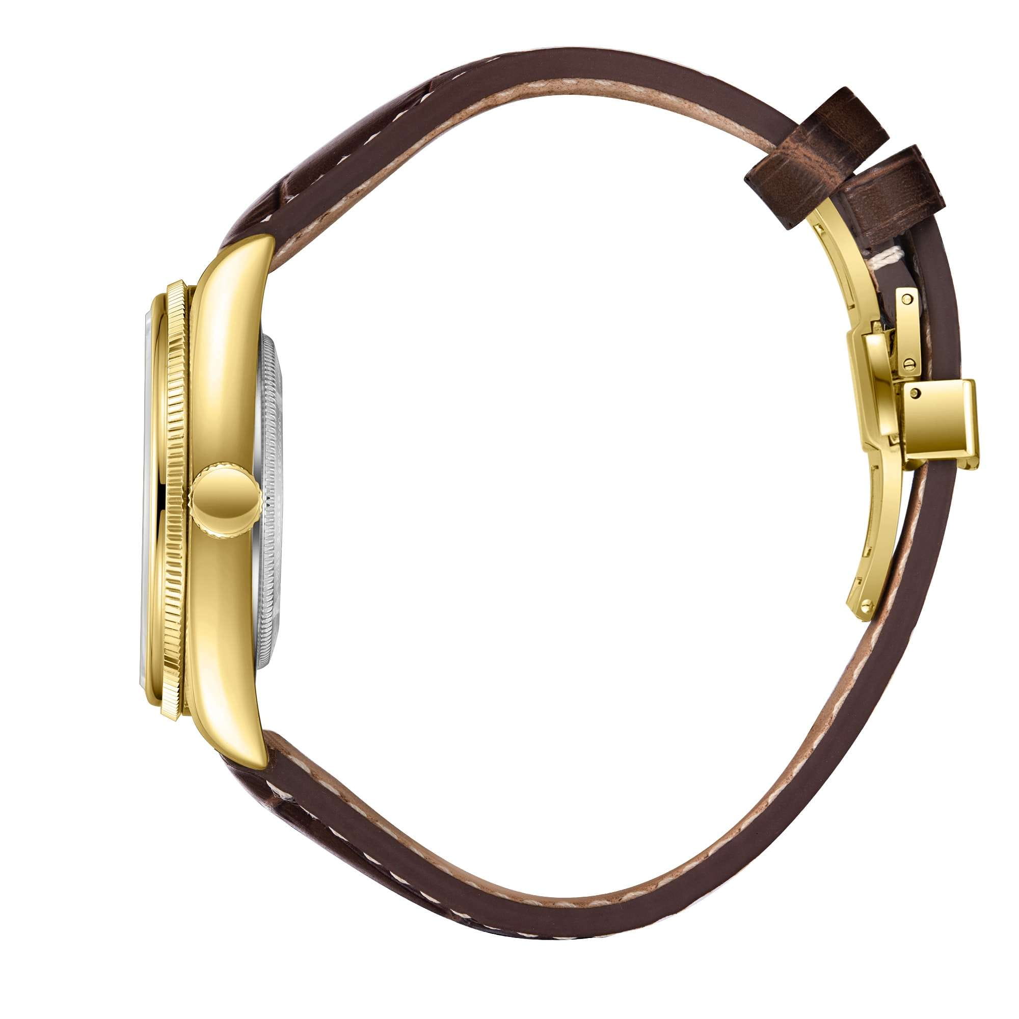 BEVERLY HILLS POLO CLUB BP3807X.132 — стильные мужские часы, сочетающие спортивную динамику и функциональность. Крупный корпус выполнен из нержавеющей стали с IP-покрытиемIP-покрытиеМетод ионного напыления. Демонстрирует повышенную устойчивость к истиранию, окислению и химическим веществам. Под воздействием высокого давления и температуры около 1500°C молекулы металла надёжно соединяются с частицами корпуса часов. золотистого цвета, диаметром 39 мм, гармонично дополнен кожаным ремешком на застёжке-бабочке с кнопкамиЗастёжка "бабочка"Такой вид застёжки дополняется предохранителями, помогающими избежать случайного раскрытия браслета. Обладают изящным исполнением. . Рифленый неподвижный безельБезельВнешний ободок, закрепляющий стекло. В спортивных часах так называется поворотное кольцо с делениями на циферблате, выполняет роль таймера – замеряет отрезки времени на шкале. Неподвижный безель – элемент декора. Однонаправленно вращающийся безель на дайверских часах позволяет фиксировать моменты погружения и выныривания на поверхность.. Циферблат с акцентными стрелками с люминесцентным покрытиемЛюминесцентное покрытиеПозволяет считывать показания времени в темноте. Производители наносят на стрелки, часовые индексы, безель или поверхность циферблата светонакопительный состав, дающий холодное свечение. делает модель более практичной. Минеральное стеклоМинеральное стеклоМинеральное стекло представляет собой искусственно выращенный минерал кварца. Такое стекло отличается особой устойчивостью к повреждениям и царапинам. Уступает по некоторым качествам сапфировому стеклу. с сапфировым покрытием защищает циферблат от царапин, а кварцевый механизм обеспечивает высокую точность. Благодаря своей универсальной эстетике эти часы уместны и в деловой среде, и в повседневном образе. Идеальный выбор для тех, кто ценит элегантный дизайн и качество. Водозащита до 50 метров позволит защитить корпус от случайных брызг или капель дождя.