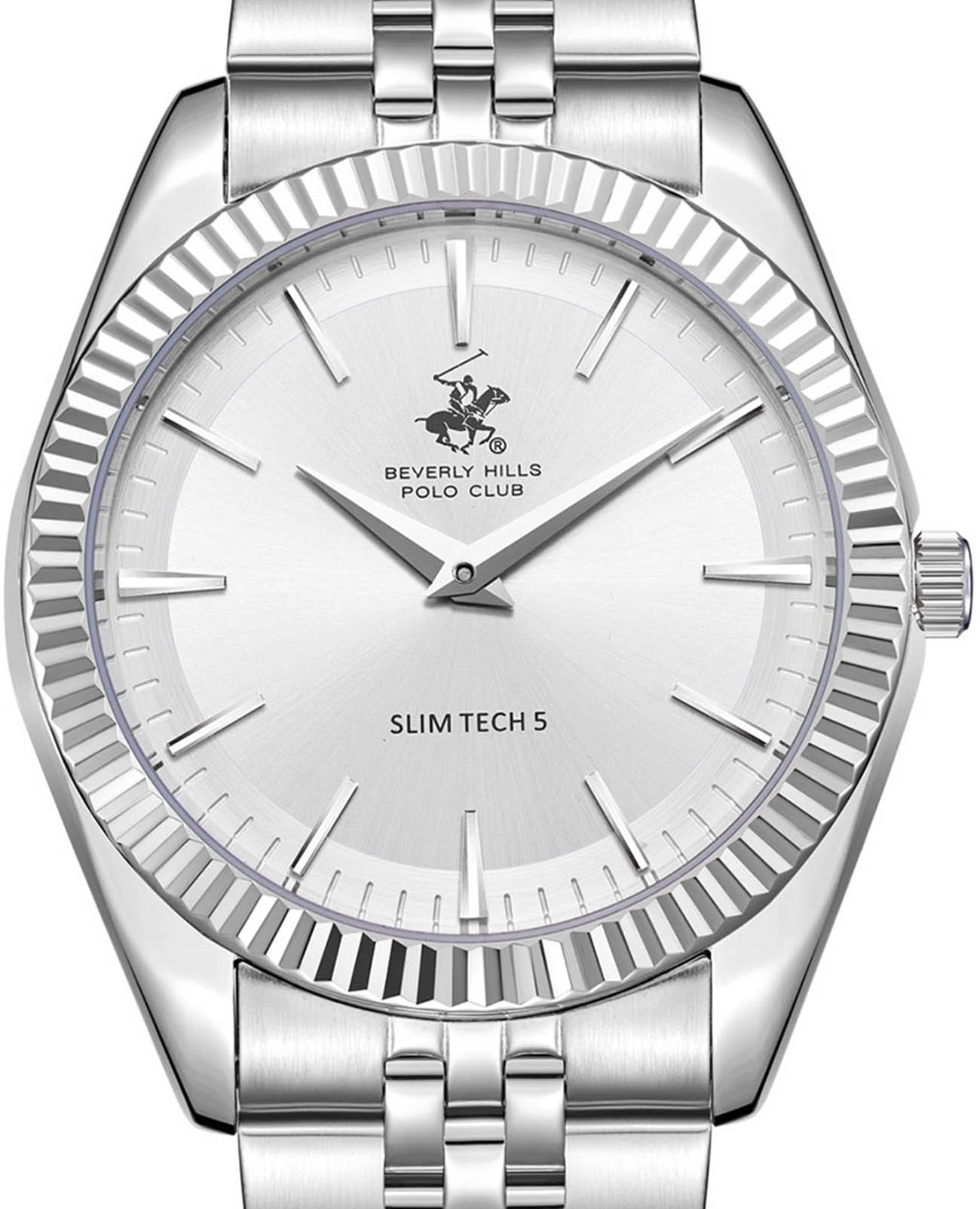 Мужские кварцевые часы Beverly Hills Polo Club — это идеальный выбор для ценителей минимализма и функциональности. Корпус диаметром 39 мм выполнен из нержавеющей стали. Циферблат серебристого цвета оформлен штрихами и стрелками. Циферблат защищён минеральным стекломМинеральное стеклоМинеральное стекло представляет собой искусственно выращенный минерал кварца. Такое стекло отличается особой устойчивостью к повреждениям и царапинам. Уступает по некоторым качествам сапфировому стеклу. с сапфировым покрытием. Часы оснащены стальным браслетом из нержавеющей стали на застёжке «бабочка» с кнопкамиЗастёжка "бабочка"Такой вид застёжки дополняется предохранителями, помогающими избежать случайного раскрытия браслета. Обладают изящным исполнением. . Водонепроницаемость 50 м позволяет использовать часы в повседневных условиях. Идеальный выбор для тех, кто ценит американское качество и универсальный дизайн.