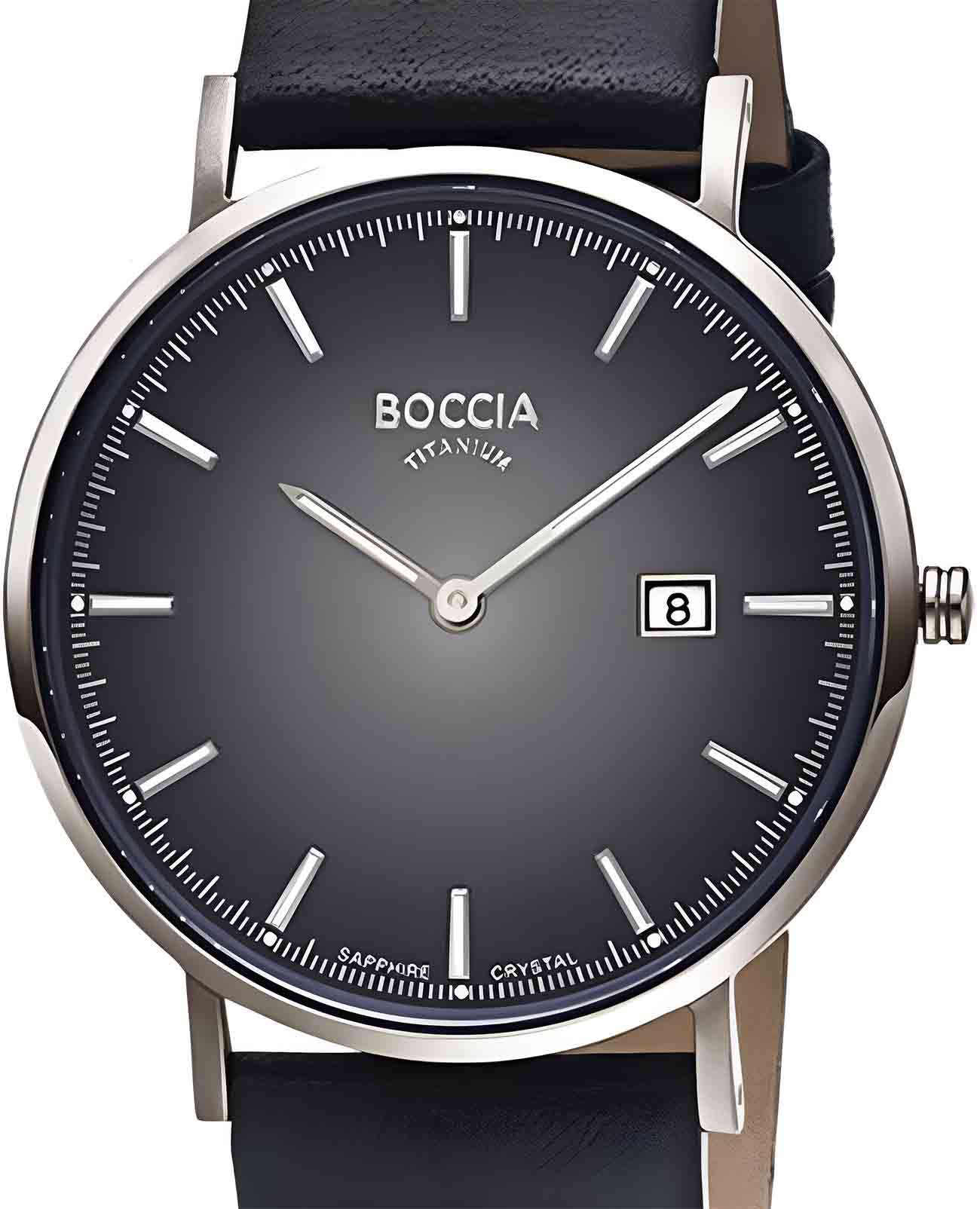 Мужские часы Boccia 3648-04 – это сочетание изысканного дизайна и высокой функциональности, созданное для современных мужчин, ценящих надежность и стиль. Оснащенные кварцевым механизмом Miyota GM15, эти часы обеспечивают точное измерение времени. На черном циферблате четко видны центральные часовая и минутная стрелки, а также апертура даты, расположенная в позиции 3 часов, что добавляет удобства в повседневном использовании. Корпус часов выполнен из гипоаллергенного титана, что обеспечивает легкость и комфорт при ношении, а диаметр корпуса составляет 39 мм, что делает их универсальными и подходящими для любого запястья. Стрелки и метки покрыты люминесцентным покрытиемЛюминесцентное покрытиеПозволяет считывать показания времени в темноте. Производители наносят на стрелки, часовые индексы, безель или поверхность циферблата светонакопительный состав, дающий холодное свечение., которое мягко светится в темноте, освещая путь даже в самых загадочных сумерках. Черный кожаный ремешок с стандартной застежкой гармонично дополняет общий стиль, придавая часам уникальный характер. Сапфировое стеклоСапфировое стеклоПрочный и надёжный материал из кристалла сапфира синтетического происхождения, характеризующийся особой твёрдостью и устойчивостью к царапинам и повреждениям., устойчивое к царапинам, надежно защищает циферблат, сохраняя его безупречный вид. Водостойкость уровня WR 50 позволяет не беспокоиться о часах при мытье рук или попадании под дождь.