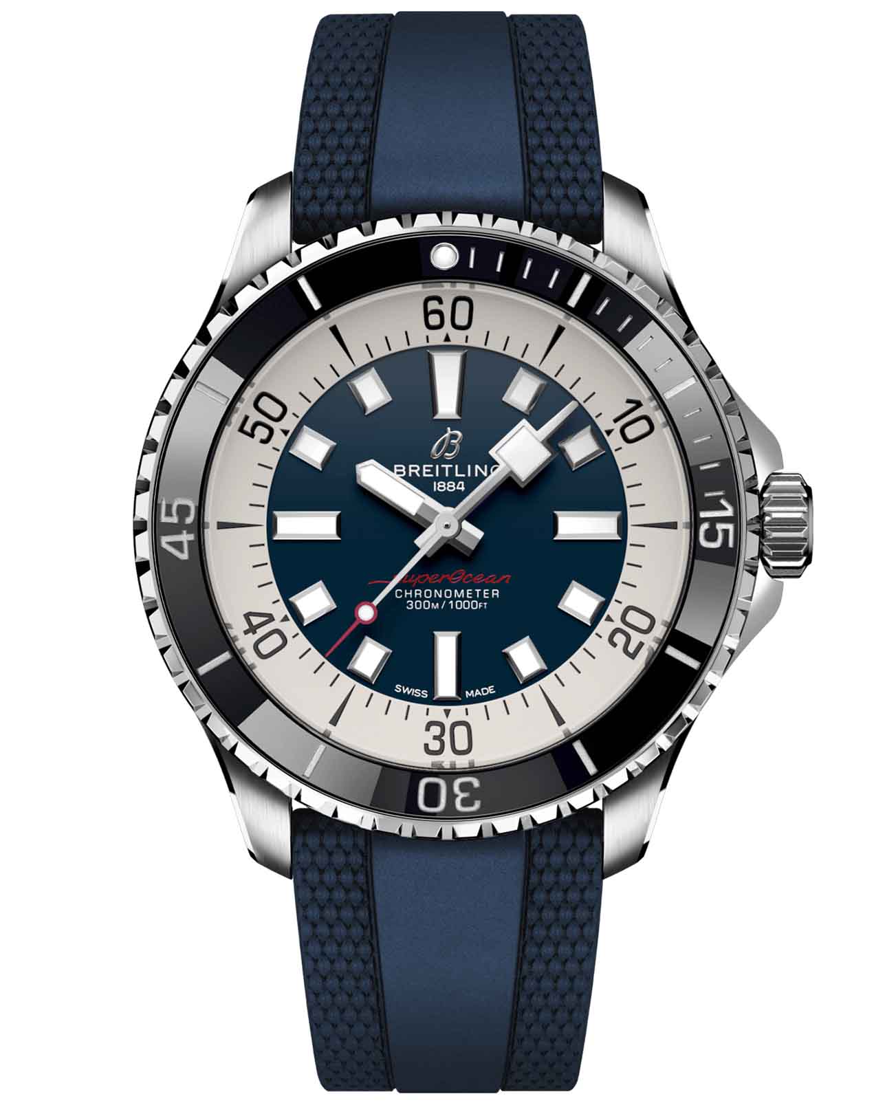 Мужские водонепроницаемые швейцарские часы Breitling Superocean Automatic 44 A17376211C1S1, механический механизм (автоматический калибр) с высокой точностью. Сапфировое стеклоСапфировое стеклоПрочный и надёжный материал из кристалла сапфира синтетического происхождения, характеризующийся особой твёрдостью и устойчивостью к царапинам и повреждениям. устойчивое к появлению царапин, обладающее высокой прозрачностью. Класс водозащиты: 300 метров, позволит плавать, нырять и заниматься другими водными видами спорта. Корпус часов изготовлен из стали. Силиконовый ремешок с раскладной застёжкойРаскладная застёжкаТакой тип застёжки используется только на браслетах из металла. Она никогда не раскрывается полностью, происходит разделение на 2 и более частей. Раскладывающая застёжка снизит вероятность потери часов к минимуму.. Стрелки и метки с люминесцентным покрытиемЛюминесцентное покрытиеПозволяет считывать показания времени в темноте. Производители наносят на стрелки, часовые индексы, безель или поверхность циферблата светонакопительный состав, дающий холодное свечение.. Широкие стрелки и индексы с люминесцентным покрытиемЛюминесцентное покрытиеПозволяет считывать показания времени в темноте. Производители наносят на стрелки, часовые индексы, безель или поверхность циферблата светонакопительный состав, дающий холодное свечение. обеспечивают легкую читаемость под водой. БезельБезельВнешний ободок, закрепляющий стекло. В спортивных часах так называется поворотное кольцо с делениями на циферблате, выполняет роль таймера – замеряет отрезки времени на шкале. Неподвижный безель – элемент декора. Однонаправленно вращающийся безель на дайверских часах позволяет фиксировать моменты погружения и выныривания на поверхность. из стали с керамической инкрустацией, защищенный от царапин, никогда не изнашивается и не выцветает. Лучше всего то, что это больше не просто часы для дайвинга — занимайтесь с ними серфингом, плавайте с ними, заходите с ними в пляжный бар, а затем надевайте их на ужин. Superocean идеально сочетает ностальгию по своему наследию со свежим внешним видом.