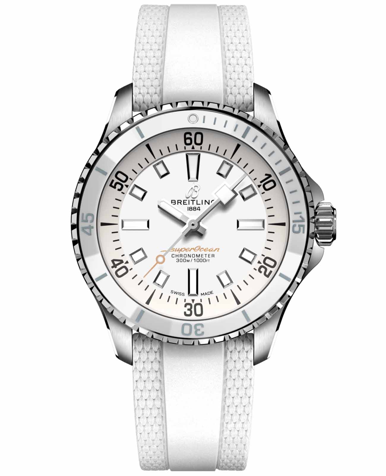 Унисекс водонепроницаемые швейцарские часы Breitling Superocean Automatic 36 A17377211A1S1, механический механизм (автоматический калибр) с высокой точностью. Сапфировое стеклоСапфировое стеклоПрочный и надёжный материал из кристалла сапфира синтетического происхождения, характеризующийся особой твёрдостью и устойчивостью к царапинам и повреждениям. устойчивое к появлению царапин, обладающее высокой прозрачностью. Класс водозащиты: 300 метров, позволит плавать, нырять и заниматься другими водными видами спорта. Корпус часов изготовлен из стали. Силиконовый ремешок с раскладной застёжкойРаскладная застёжкаТакой тип застёжки используется только на браслетах из металла. Она никогда не раскрывается полностью, происходит разделение на 2 и более частей. Раскладывающая застёжка снизит вероятность потери часов к минимуму.. Два варианта ремешка (резиновый и металлический браслет) имеют складывающуюся застежку, которая позволяет осуществлять микрорегулировку до 15 мм для удобства ношения поверх гидрокостюмов. Новый Superocean повторяет знаменитые дизайнерские коды Slow Motion, добавляя при этом современные элементы, такие как безель с керамической вставкой и яркие циферблаты. Стрелки и метки с люминесцентным покрытиемЛюминесцентное покрытиеПозволяет считывать показания времени в темноте. Производители наносят на стрелки, часовые индексы, безель или поверхность циферблата светонакопительный состав, дающий холодное свечение.. Широкие стрелки и индексы с люминесцентным покрытиемЛюминесцентное покрытиеПозволяет считывать показания времени в темноте. Производители наносят на стрелки, часовые индексы, безель или поверхность циферблата светонакопительный состав, дающий холодное свечение. обеспечивают легкую читаемость под водой. Вращающийся стальной безельБезельВнешний ободок, закрепляющий стекло. В спортивных часах так называется поворотное кольцо с делениями на циферблате, выполняет роль таймера – замеряет отрезки времени на шкале. Неподвижный безель – элемент декора. Однонаправленно вращающийся безель на дайверских часах позволяет фиксировать моменты погружения и выныривания на поверхность. с люминесцентным покрытиемЛюминесцентное покрытиеПозволяет считывать показания времени в темноте. Производители наносят на стрелки, часовые индексы, безель или поверхность циферблата светонакопительный состав, дающий холодное свечение. Superluminova из нержавеющей стали и керамики, защищенный от царапин, никогда не изнашивается и не выцветает. Лучше всего то, что это больше не просто часы для дайвинга — занимайтесь с ними серфингом, плавайте с ними, заходите с ними в пляжный бар, а затем надевайте их на ужин. Superocean идеально сочетает ностальгию по своему наследию со свежим внешним видом.
