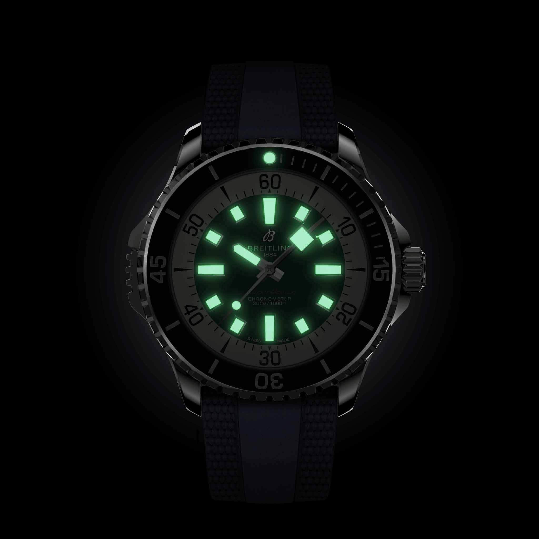 Мужские водонепроницаемые швейцарские часы Breitling Superocean Automatic 46 A17378E71C1S1, механический механизм (автоматический калибр) с высокой точностью. Сапфировое стеклоСапфировое стеклоПрочный и надёжный материал из кристалла сапфира синтетического происхождения, характеризующийся особой твёрдостью и устойчивостью к царапинам и повреждениям. устойчивое к появлению царапин, обладающее высокой прозрачностью. Класс водозащиты: 300 метров, позволит плавать, нырять и заниматься другими водными видами спорта. Корпус часов изготовлен из стали. Силиконовый ремешок с раскладной застёжкойРаскладная застёжкаТакой тип застёжки используется только на браслетах из металла. Она никогда не раскрывается полностью, происходит разделение на 2 и более частей. Раскладывающая застёжка снизит вероятность потери часов к минимуму.. Стрелки и метки с люминесцентным покрытиемЛюминесцентное покрытиеПозволяет считывать показания времени в темноте. Производители наносят на стрелки, часовые индексы, безель или поверхность циферблата светонакопительный состав, дающий холодное свечение.. Широкие стрелки и индексы с люминесцентным покрытиемЛюминесцентное покрытиеПозволяет считывать показания времени в темноте. Производители наносят на стрелки, часовые индексы, безель или поверхность циферблата светонакопительный состав, дающий холодное свечение. обеспечивают легкую читаемость под водой. Вращающийся стальной безельБезельВнешний ободок, закрепляющий стекло. В спортивных часах так называется поворотное кольцо с делениями на циферблате, выполняет роль таймера – замеряет отрезки времени на шкале. Неподвижный безель – элемент декора. Однонаправленно вращающийся безель на дайверских часах позволяет фиксировать моменты погружения и выныривания на поверхность. с люминесцентным покрытиемЛюминесцентное покрытиеПозволяет считывать показания времени в темноте. Производители наносят на стрелки, часовые индексы, безель или поверхность циферблата светонакопительный состав, дающий холодное свечение. Superluminova из нержавеющей стали и керамики, защищенный от царапин, никогда не изнашивается и не выцветает.