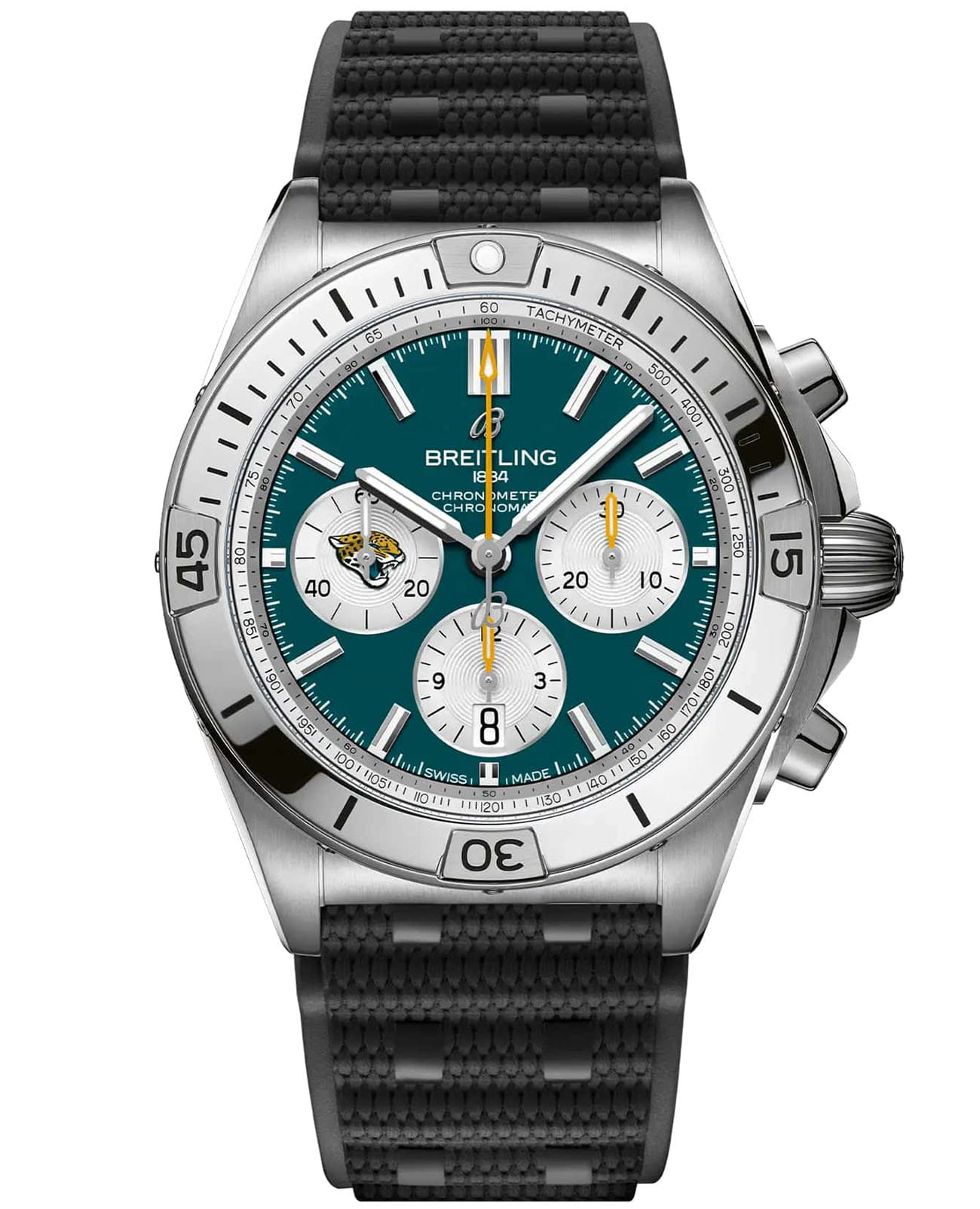 Швейцарские механические часы Breitling Chronomat B01 42 NFL Jacksonville Jaguars Edition AB01342B1L3S1