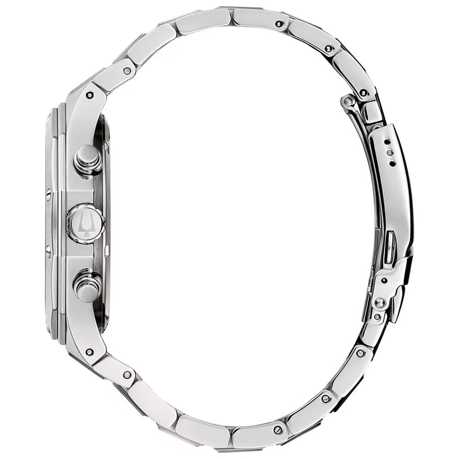 Мужские кварцевые часы-хронографХронографФункция позволяет измерять отрезки времени с особой точностью: часы, минуты, секунды. Верным признаком хронографа является наличие на циферблате 3 дополнительных окошек-счётчиков. Bulova Classic 96B409  – отражающий идеальное сочетание современного дизайна, надёжности и функциональности. Элегантный облик станет превосходным завершением образа, наделив его индивидуальным характером. Корпус из нержавеющей стали, диаметром 44 мм идеально сбалансирован и элегантен. Минеральное стеклоМинеральное стеклоМинеральное стекло представляет собой искусственно выращенный минерал кварца. Такое стекло отличается особой устойчивостью к повреждениям и царапинам. Уступает по некоторым качествам сапфировому стеклу. защищает циферблат от царапин и устойчивое к мелким механическим повреждениям. Шкала тахиметраТахиметрРазмеченная шкала, располагается на ободке или безеле часов. Тахиметр позволяет рассчитать скорость на определённом участке пути, расстояние измеряется в километрах или милях. на циферблате. Стальной браслет на раскладной застёжкеРаскладная застёжкаТакой тип застёжки используется только на браслетах из металла. Она никогда не раскрывается полностью, происходит разделение на 2 и более частей. Раскладывающая застёжка снизит вероятность потери часов к минимуму. обеспечивает комфортное ношение. Стрелки и метки с люминесцентным покрытиемЛюминесцентное покрытиеПозволяет считывать показания времени в темноте. Производители наносят на стрелки, часовые индексы, безель или поверхность циферблата светонакопительный состав, дающий холодное свечение. позволяющие легко определять время даже в темноте. Водозащита 100 метров, позволит плавать, нырять и заниматься другими водными видами спорта. Окошко даты находится в положении между 4 и 5 часов. Эта модель – отличный выбор для тех, кто ищет сочетание стиля, качества и функциональности. Часы станут не только полезным аксессуаром, но и выразительным элементом вашего имиджа.