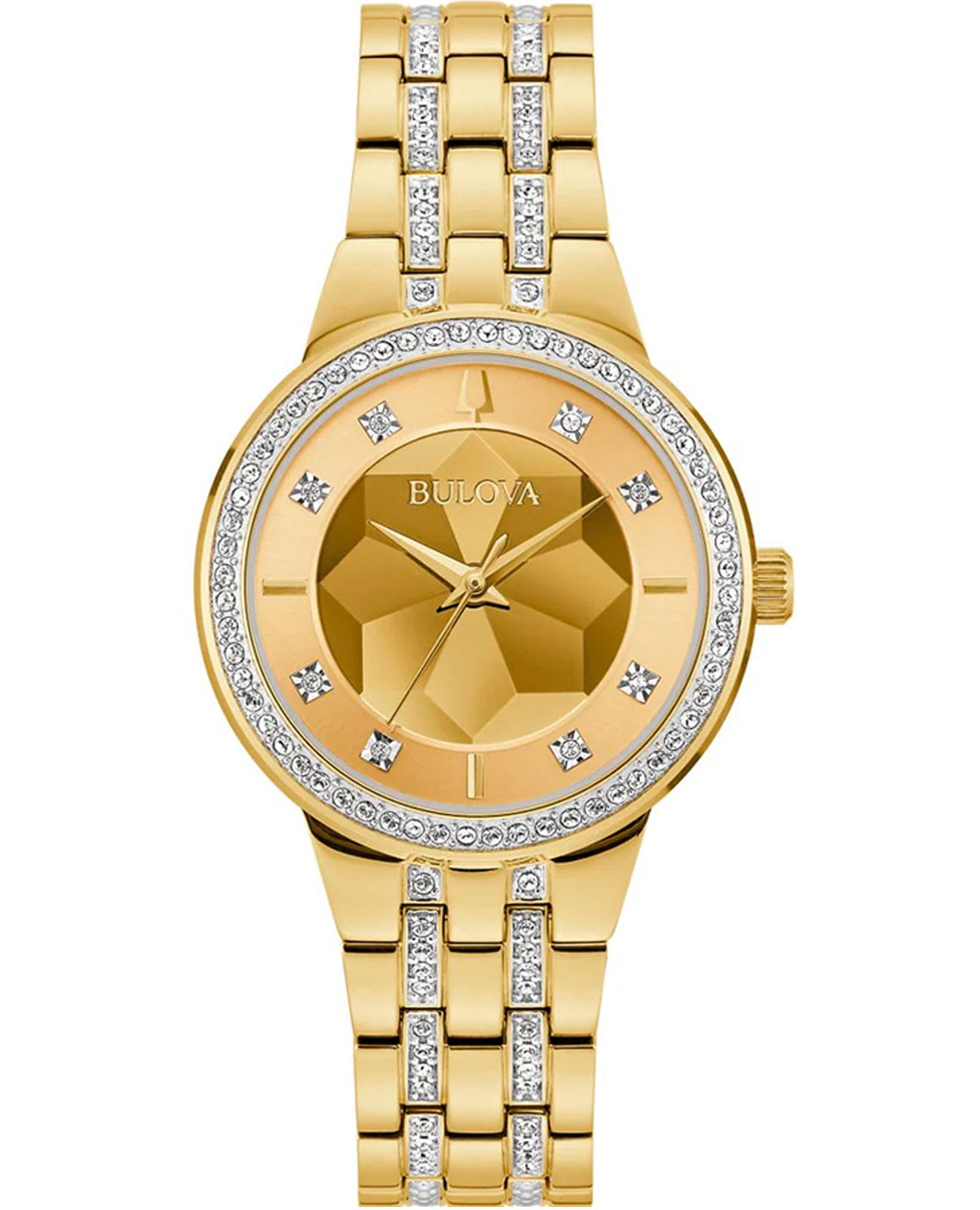 Женские кварцевые часы Bulova Crystal Ladies 97L176 – отражающий идеальное сочетание современного дизайна, надёжности и функциональности. Элегантный облик станет превосходным завершением образа, наделив его индивидуальным характером. Корпус из нержавеющей стали с IP-покрытиемIP-покрытиеМетод ионного напыления. Демонстрирует повышенную устойчивость к истиранию, окислению и химическим веществам. Под воздействием высокого давления и температуры около 1500°C молекулы металла надёжно соединяются с частицами корпуса часов., диаметром 32 мм идеально сбалансирован и элегантен. Минеральное стеклоМинеральное стеклоМинеральное стекло представляет собой искусственно выращенный минерал кварца. Такое стекло отличается особой устойчивостью к повреждениям и царапинам. Уступает по некоторым качествам сапфировому стеклу. защищает циферблат от царапин и устойчивое к мелким механическим повреждениям. БезельБезельВнешний ободок, закрепляющий стекло. В спортивных часах так называется поворотное кольцо с делениями на циферблате, выполняет роль таймера – замеряет отрезки времени на шкале. Неподвижный безель – элемент декора. Однонаправленно вращающийся безель на дайверских часах позволяет фиксировать моменты погружения и выныривания на поверхность. и браслет украшены 120 кристаллами Swarovski. Стальной браслет на раскладной застёжкеРаскладная застёжкаТакой тип застёжки используется только на браслетах из металла. Она никогда не раскрывается полностью, происходит разделение на 2 и более частей. Раскладывающая застёжка снизит вероятность потери часов к минимуму. с IP-покрытиемIP-покрытиеМетод ионного напыления. Демонстрирует повышенную устойчивость к истиранию, окислению и химическим веществам. Под воздействием высокого давления и температуры около 1500°C молекулы металла надёжно соединяются с частицами корпуса часов. обеспечивает комфортное ношение. Водозащита 30 метров позволит защитить корпус от случайных брызг или капель дождя. Эта модель – отличный выбор для тех, кто ищет сочетание стиля, качества и функциональности. Часы станут не только полезным аксессуаром, но и выразительным элементом вашего имиджа.
