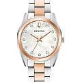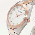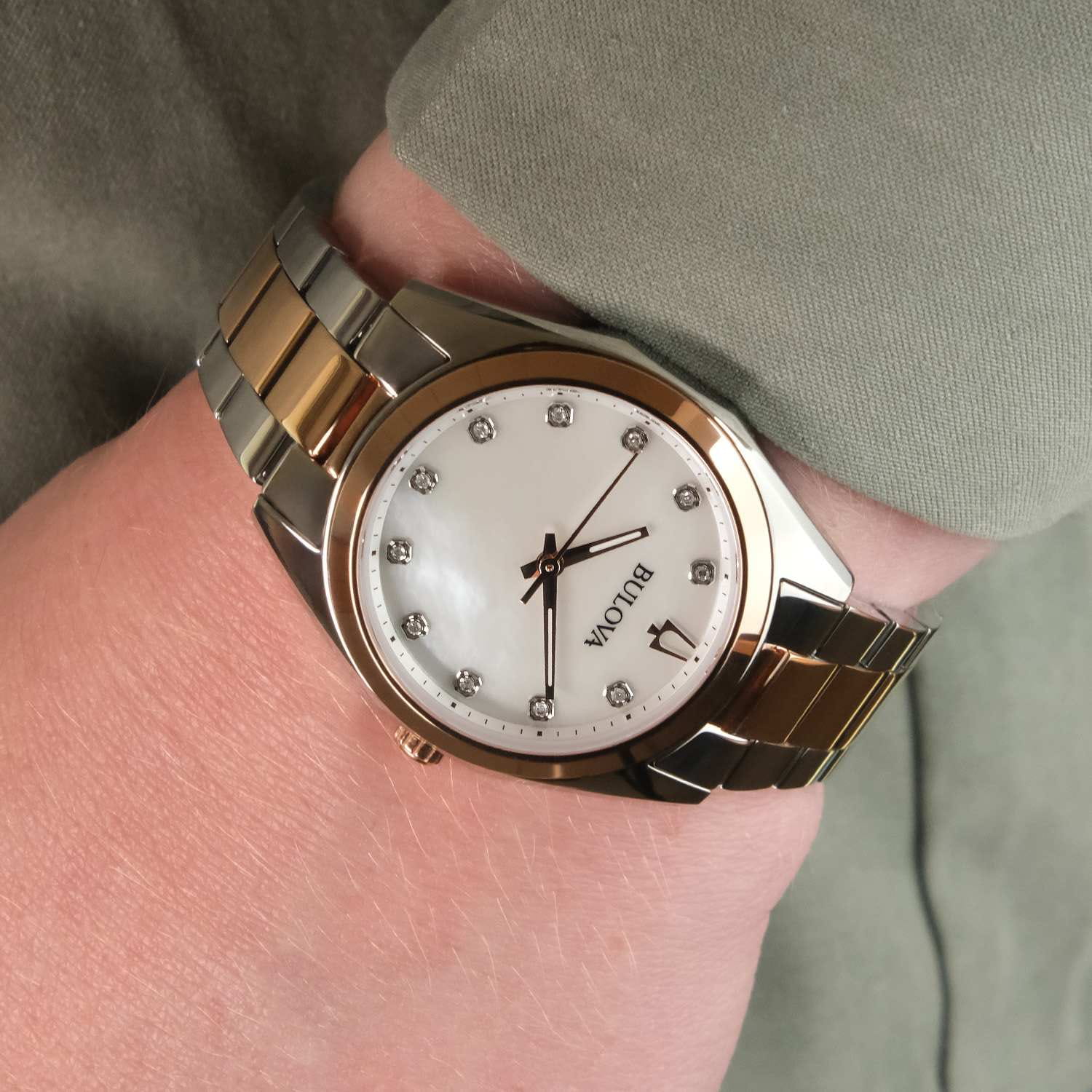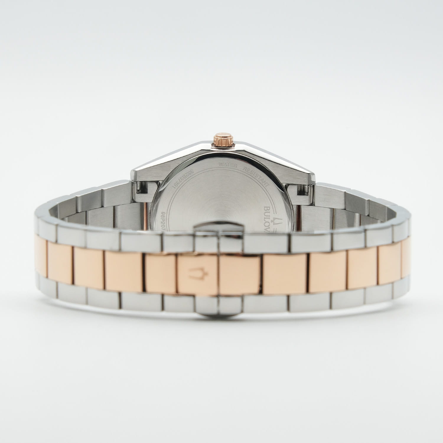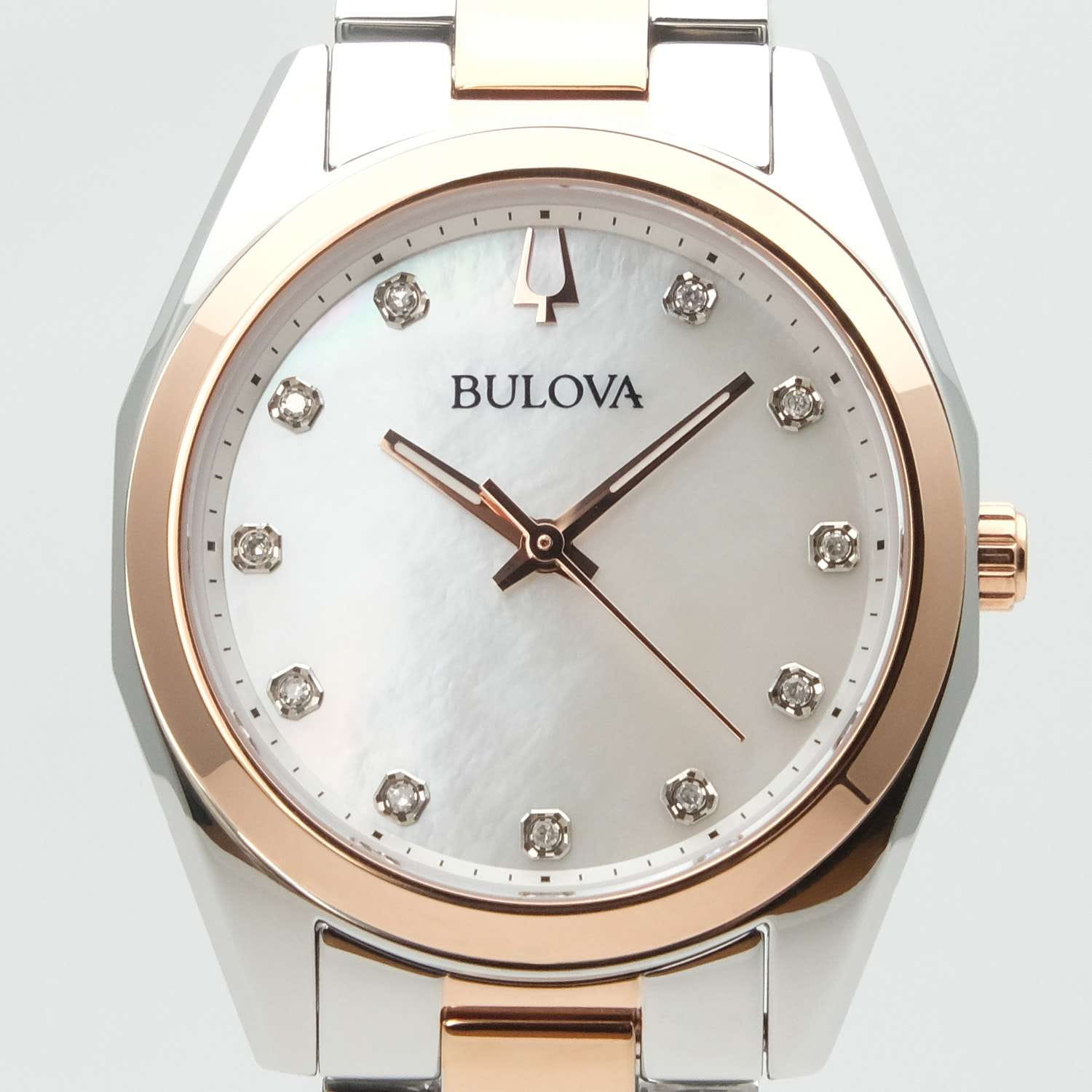 Женские кварцевые часы Bulova Surveyor 98P207 – отражающий идеальное сочетание современного дизайна, надёжности и функциональности. Элегантный облик станет превосходным завершением образа, наделив его индивидуальным характером. Корпус из нержавеющей стали серебристого цвета, диаметром 31 мм идеально сбалансирован и элегантен. Минеральное стеклоМинеральное стеклоМинеральное стекло представляет собой искусственно выращенный минерал кварца. Такое стекло отличается особой устойчивостью к повреждениям и царапинам. Уступает по некоторым качествам сапфировому стеклу. защищает циферблат от царапин и устойчивое к мелким механическим повреждениям. Неподвижный безельБезельВнешний ободок, закрепляющий стекло. В спортивных часах так называется поворотное кольцо с делениями на циферблате, выполняет роль таймера – замеряет отрезки времени на шкале. Неподвижный безель – элемент декора. Однонаправленно вращающийся безель на дайверских часах позволяет фиксировать моменты погружения и выныривания на поверхность. с IP-покрытиемIP-покрытиеМетод ионного напыления. Демонстрирует повышенную устойчивость к истиранию, окислению и химическим веществам. Под воздействием высокого давления и температуры около 1500°C молекулы металла надёжно соединяются с частицами корпуса часов. цвета розового золота. Циферблат украшен бриллиантами. Стальной браслет с частичным IP-покрытиемIP-покрытиеМетод ионного напыления. Демонстрирует повышенную устойчивость к истиранию, окислению и химическим веществам. Под воздействием высокого давления и температуры около 1500°C молекулы металла надёжно соединяются с частицами корпуса часов. на застёжке-бабочке с кнопкамиЗастёжка "бабочка"Такой вид застёжки дополняется предохранителями, помогающими избежать случайного раскрытия браслета. Обладают изящным исполнением. обеспечивает комфортное ношение. Стрелки с люминесцентным покрытиемЛюминесцентное покрытиеПозволяет считывать показания времени в темноте. Производители наносят на стрелки, часовые индексы, безель или поверхность циферблата светонакопительный состав, дающий холодное свечение.. Водозащита 30 метров позволит защитить корпус от случайных брызг или капель дождя. Эта модель – отличный выбор для тех, кто ищет сочетание стиля, качества и функциональности. Часы станут не только полезным аксессуаром, но и выразительным элементом вашего имиджа.