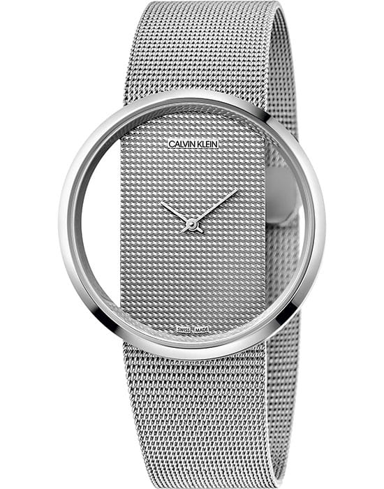 Полупрозрачный корпус имеет циферблат с тиснёным узором, визуально перетекающим в браслет миланского плетения. Оригинальная модель работает за счёт швейцарского кварцевого механизма ETA F03.111. Сапфировое стекло устойчиво к царапинам.
