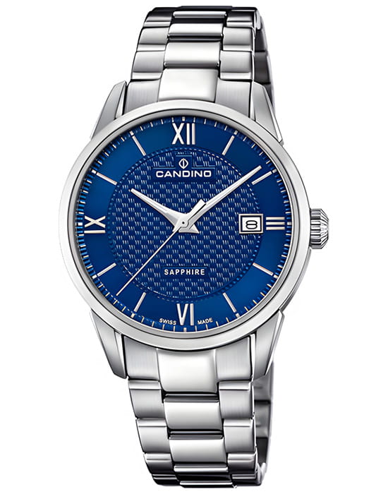 Швейцарские мужские наручные часы Candino Classic C4711/C, кварцевый механизм с высокой точностью. Сапфировое стеклоСапфировое стеклоПрочный и надёжный материал из кристалла сапфира синтетического происхождения, характеризующийся особой твёрдостью и устойчивостью к царапинам и повреждениям. устойчивое к появлению царапин, обладающее высокой прозрачностью. Класс водозащиты: 100 метров, позволит плавать, нырять и заниматься другими водными видами спорта. Раскладная застёжкаРаскладная застёжкаТакой тип застёжки используется только на браслетах из металла. Она никогда не раскрывается полностью, происходит разделение на 2 и более частей. Раскладывающая застёжка снизит вероятность потери часов к минимуму. с фиксатором. Корпус часов изготовлен из стали.
