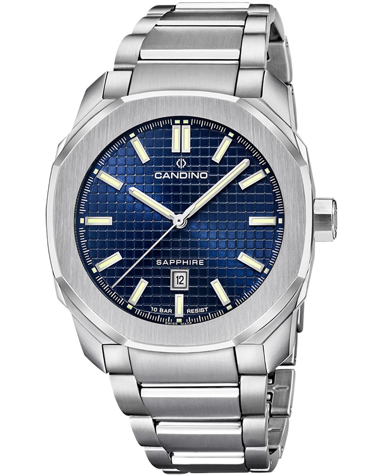Мужские наручные часы Candino Gents Sport C4754/2 с надёжным кварцевым механизмом. Корпус и браслет часов изготовлены из нержавеющей стали. Сапфировое стеклоСапфировое стеклоПрочный и надёжный материал из кристалла сапфира синтетического происхождения, характеризующийся особой твёрдостью и устойчивостью к царапинам и повреждениям., устойчивое к мелким механическим повреждениям. Окошко даты находится в положении 6 часов. Стрелки и метки с люминесцентным покрытиемЛюминесцентное покрытиеПозволяет считывать показания времени в темноте. Производители наносят на стрелки, часовые индексы, безель или поверхность циферблата светонакопительный состав, дающий холодное свечение.. Стальной браслет на раскладной застёжкеРаскладная застёжкаТакой тип застёжки используется только на браслетах из металла. Она никогда не раскрывается полностью, происходит разделение на 2 и более частей. Раскладывающая застёжка снизит вероятность потери часов к минимуму.. Класс водозащиты: 100 метров, позволит плавать, нырять и заниматься другими водными видами спорта.