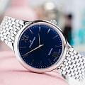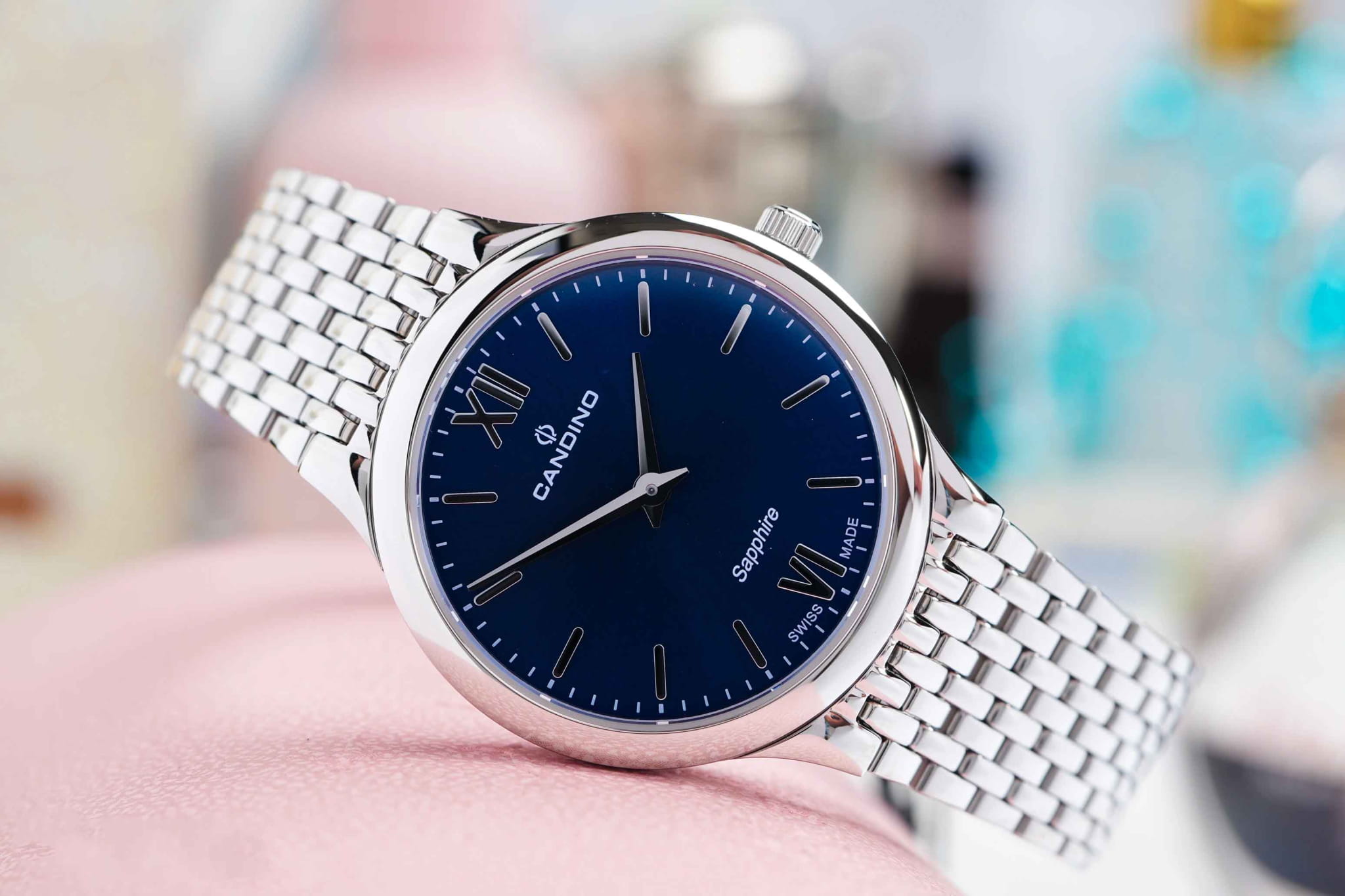 Женские кварцевые часы Candino из коллекции Series 1947 — это утончённый аксессуар, сочетающий минимализм и швейцарское качество. Корпус диаметром 33,5 мм и толщиной всего 6 мм выполнен из нержавеющей стали 316L, что делает часы особенно лёгкими и комфортными в ношении. Циферблат синего цвета оформлен двумя стрелками без индикации даты, что придаёт дизайну чистоту и элегантность. Циферблат защищён сапфировым стекломСапфировое стеклоПрочный и надёжный материал из кристалла сапфира синтетического происхождения, характеризующийся особой твёрдостью и устойчивостью к царапинам и повреждениям., устойчивым к царапинам. Механизм — кварцевый произведённый в Швейцарии. Часы оснащены стальным браслетом на застёжке «бабочка» с кнопкамиЗастёжка "бабочка"Такой вид застёжки дополняется предохранителями, помогающими избежать случайного раскрытия браслета. Обладают изящным исполнением. . Водонепроницаемость 50 м позволяет использовать часы в повседневных условиях. Гарантия — 2 года. Идеальный выбор для тех, кто ценит лаконичный стиль, точность и надёжность.