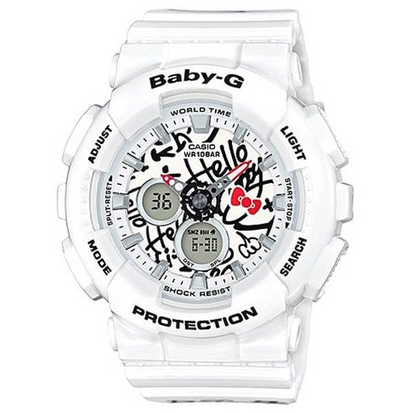 Baby-G Hello Kitty Limited Models. Еще одна коллаборация: BABY-G совместно с HELLO KITTY выпускают ограниченную серию часов, сочетающих классический узнаваемый корпус и яркий дизайн в стиле граффити 70-х годов прошлого столетия. Свобода в выборе и самовыражении, дух улиц и бунтарство - отличительные черты владелицы этих часов. Светодиодная подсветка с функцией автоматической подсветки при наклоне часов. Функция секундомера. Таймер обратного отсчета. 5 ежедневных будильников. Автоматический календарь. Функция мирового времени. Отображение времени в 12-часовом или 24-часовом формате. Особая ударопрочная конструкция защищает от ударов и вибрации. Минеральное стекло устойчивое к возникновению царапин. Ремешок из полимерного материала. Натуральный полимерный материал является идеальным для изготовления ремешка благодаря своей чрезвычайной прочности и гибкости. Корпус выполнен из высококачественного пластика. Задняя крышка стальная. Водонепроницаемость (10 Бар).