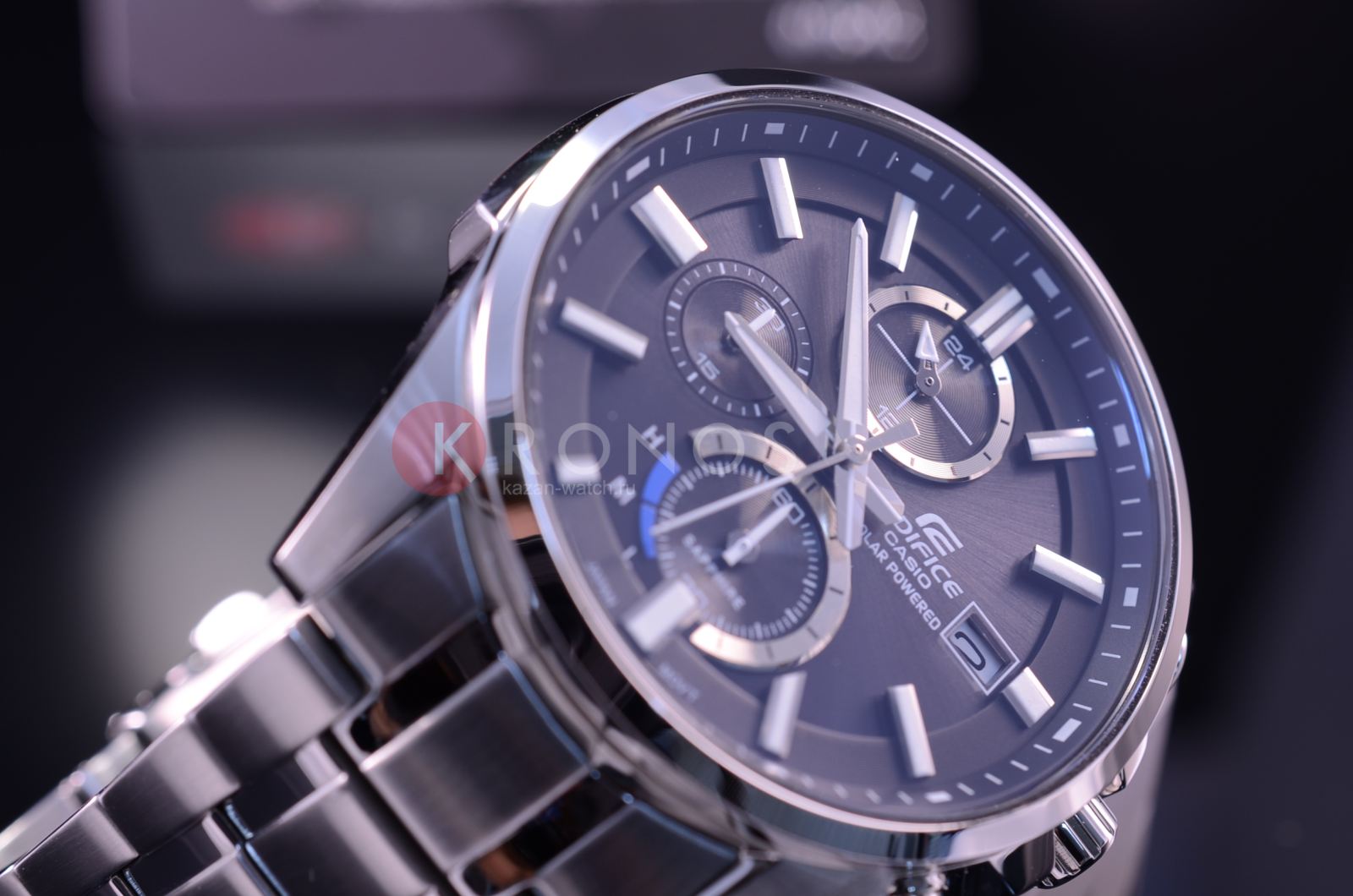 Стильные наручные кварцевые мужские часы на солнечной батарейке. Индикатор уровня заряда аккумулятора (Этот индикатор отображает текущий уровень заряда аккумулятора). Круглый корпус и браслет часов выполнены из высокопрочной стали. Черный фон циферблата с контрастными элементами дизайна. Водонепроницаемость часов составляет 10 ATM. Сапфировое стекло, устойчивое к появлению царапин. Часы оснащены хронографом. Модный и современный аксессуар.