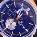 Классические японские наручные кварцевые мужские часы. Круглый корпус часов полностью выполнен из высокопрочной стали с антикоррозийными свойствами. Синий фон циферблат и стальные элементы дизайна. Водонепроницаемость часов составляет 10 ATM, в часах можно плавать и нырять без акваланга. Минеральное стекло, устойчивое к появлению царапин. В часах присутствуют секундомер и хронограф. Элегантная и лаконичная модель для людей, для которых важен классический стиль. Ремешок выполнен из натуральной кожи коричневого цвета.