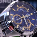 Кварцевый хронографХронографФункция позволяет измерять отрезки времени с особой точностью: часы, минуты, секунды. Верным признаком хронографа является наличие на циферблате 3 дополнительных окошек-счётчиков. понравится любителям активного образа жизни, динамичный дизайн модели станет отображением вашей жизненной позиции и стремления к победам. Синий циферблат с узором и золотистыми метками и стрелками дополнен миниатюрными счётчиками, отличающимися оригинальным исполнением и расположением. Минеральное стекло устойчиво к царапинам. Срок службы батарейки - 3 года. Люминесцентная подсветкаЛюминесцентное покрытиеПозволяет считывать показания времени в темноте. Производители наносят на стрелки, часовые индексы, безель или поверхность циферблата светонакопительный состав, дающий холодное свечение.. Водонепроницаемость до 10 бар, чему дополнительно способствует закручивающаяся крышка. Секундомер, отображение даты. Габариты: 51 x 43,8 x 12,4 мм.