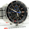 Лаконичный чёрный циферблат с оригинальным узором счётчиков имеет яркие синие акценты в виде секундной стрелки и элементе миниатюрного окошка на позиции 9 часов. Крупные стрелки обладают люминесцентным покрытиемЛюминесцентное покрытиеПозволяет считывать показания времени в темноте. Производители наносят на стрелки, часовые индексы, безель или поверхность циферблата светонакопительный состав, дающий холодное свечение., позволяющим без затруднений использовать часы в темноте. Браслет из нержавеющей стали 316L надёжно обхватывает запястье, долговечный материал устойчив к ударам и повреждениям. Минеральное стекло. Отображение текущего числа. Габариты: 50,6 x 44 x 11,2 мм.