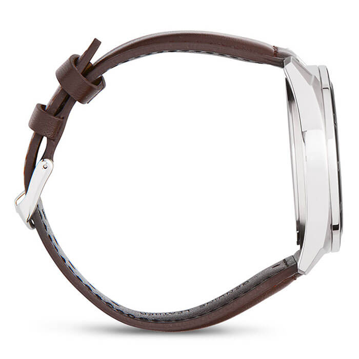 Лаконичный чёрный циферблат с оригинальным узором счётчиков имеет яркие голубые акценты в виде секундной стрелки и элементе миниатюрного окошка на позиции 9 часов. Крупные стрелки обладают люминесцентным покрытиемЛюминесцентное покрытиеПозволяет считывать показания времени в темноте. Производители наносят на стрелки, часовые индексы, безель или поверхность циферблата светонакопительный состав, дающий холодное свечение., позволяющим без затруднений использовать часы в темноте. Ремешок из натуральной кожи надёжно обхватывает запястье, привнося в образ красоту и стиль. Минеральное стекло. Отображение текущего числа. Габариты: 50,6 x 44 x 11,2 мм.