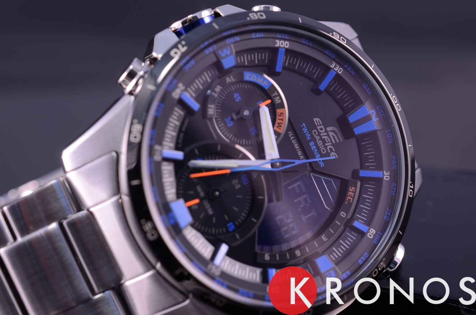 Прежде чем заказывать в интернете эти часы, посмотрите их "живьём". Не поленитесь добраться до ближайшего магазина. Тёмный циферблат, на котором в тёмное время суток или в плохо освещённом помещении/месте с трудом различаешь показания. Эти намазанные кистью с синей/красной краской (разные модели) метки просто ужас. Надписи - тоже дешёвые, красочкой... В темноте светятся только стрелки! Да, подсветка шикарная! Как новогодняя гирлянда! Но пользоваться ей можно только ограниченное количество времени. Или лучше вообще не пользоваться, так как батарейки, а их две, разряжаются более интенсивно. Два циферблата - аналоговый и цифровой. На цифровом минимум информации и ночью эта часть часов бесполезна - подсветка её не подсвечивает! Да, в этих часах термометр!!! Вы можете определять температуру наружного воздуха!!! Если не будете носить часы! Если часы на руке, увидите температуру Вашего запястья и то с погрешностью... Откалибровать показания можно, но, повторюсь, часы должны находиться вне Вашей руки... После снятия с руки должны отлежаться в течении 20-30 минут, что б "остыть" до окружающей среды! КОМПАС!!! Грибников и путешественников должно колбасить от этой дополнительной функции! Но кто ходил с настоящим компасом, на этом лучше не останавливать своё внимание... Заведёт и не выведет... Это просто дополнительная функция и маркетинговый ход. Про секундомер ничего не скажу, он есть и может кому понадобится... Весят 172 гр. Не для маленькой руки... Время показывают, что ещё нужно за такие деньги?..