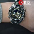 Японские мужские наручные часы Casio Edifice надежные и практичные. Кварцевый японский механизм Miyota. Точность хода не хуже -10 +15 сек./в месяц. Часы оснащены функциями: Секундомера, таймера обратного отсчета, мирового времени, термометра. Светодиодная автоматическая супер-подсветка. При движении руки дисплей освещается ярким цветным светом.Стрелки и индексы с светонакопительным нанесением. Корпус и браслет выполнены из нержавеющей стали. Минеральное стекло устойчиво к появлению царапин. Водонепроницаемость 100М. В часах можно плавать.