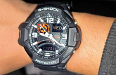 Японские мужские часы-хронографХронографФункция позволяет измерять отрезки времени с особой точностью: часы, минуты, секунды. Верным признаком хронографа является наличие на циферблате 3 дополнительных окошек-счётчиков. Casio G-Shock  G-SHOCK GA-1000-1A из коллекции G-Shock. Минеральное стеклоМинеральное стеклоМинеральное стекло представляет собой искусственно выращенный минерал кварца. Такое стекло отличается особой устойчивостью к повреждениям и царапинам. Уступает по некоторым качествам сапфировому стеклу. устойчивое к появлению царапин, обладающее высокой прозрачностью. Корпус часов изготовлен из полимерного материала. Светонакопительное покрытие NeobriteПодсветка NeobriteИспользование светонакопительных составов на основе сульфида цинка или алюмината стронция, яркий свет можно наблюдать на протяжении 6-10 часов после «зарядки» часов около источника света.. Циферблат подсвечивается подсветкой Neon IlluminatorNeon IlluminatorУникальная подсветка циферблата. На индексы наносятся специальные флуоресцентные чернила, которые подсвечиваются светодиодной подсветкой. ,  благодаря наличию функции задержки, после отпускания кнопки освещение горит еще несколько секунд. Ударопрочный корпусУдаропрочный корпусМеханизм заключён в корпус, выполненный из современных материалов, устойчивых к ударам, механическим повреждениям и падению с высоты: инновационный пластик, карбон, нержавеющая сталь, титан. защищает механизм от ударов и вибрации. Мировое времяМировое время Полезное часовое усложнение, отображающее время в основных городах и известных областях по всему миру, оно связано с часовыми поясами, удобно для путешественников и бизнесменов. – 48 городов (29 часовых поясов). СекундомерСекундомерСекундоме́р — прибор, способный измерять интервалы времени с точностью до долей секунды. с точностью измерения 1/100 секунды и измерением до 23 часов 59 минут 59,99 cек. ТаймерТаймерОтсчитывает секунды в обратном направлении в заданном интервале времени. обратного отсчета (диапазон времени 24 часа), автоматический календарь, 12/24 отображение времени, будильникБудильникБуди́льник — часы, в заданный момент времени подающие звуковой, световой и/или в редких случаях другой сигнал.. Встроенный цифровой компас. Диапазон измерения от 0° до 359° с точностью 1°. Коррекция магнитного склонения. Встроенный датчик температуры от -10° до +60 °. Батарейка рассчитана на 2 года. Стальная задняя крышка крепится на 4-х винтах. Класс водозащиты: 200 метров, позволит плавать, нырять и заниматься другими водными видами спорта. Ремешок из полимерного материала на стандартной застежке.