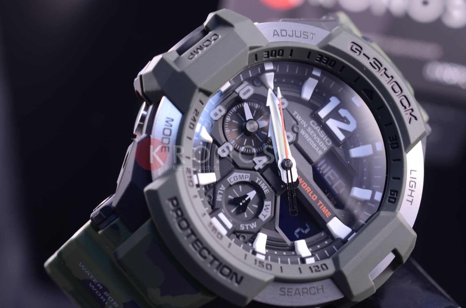 Компания Casio выпустила новинку в коллекции Olive Drab на основе модели GA-1100. Эти часы- новое поколение часов, разработанных специально для пилотов. Главной особенностью GA-1100 является уникальная функция управления мировым временем - часы способны отображать значения времени в двух городах одновременно, с помощью стрелки минут, часов и на встроенном дисплее. Часы просты в управлении и позволяют одним нажатием кнопки узнать время отлета и предполагаемого прибытия в пункт назначения, отследить температуру в кабине самолета и на взлетно-посадочной полосе и определить текущее месторасположение по встроенному компасу. Помимо этого, модель GA-1100 оснащена сверхъяркой подсветкой LED, что позволяет использовать часы вне зависимости от степени освещенности помещения.