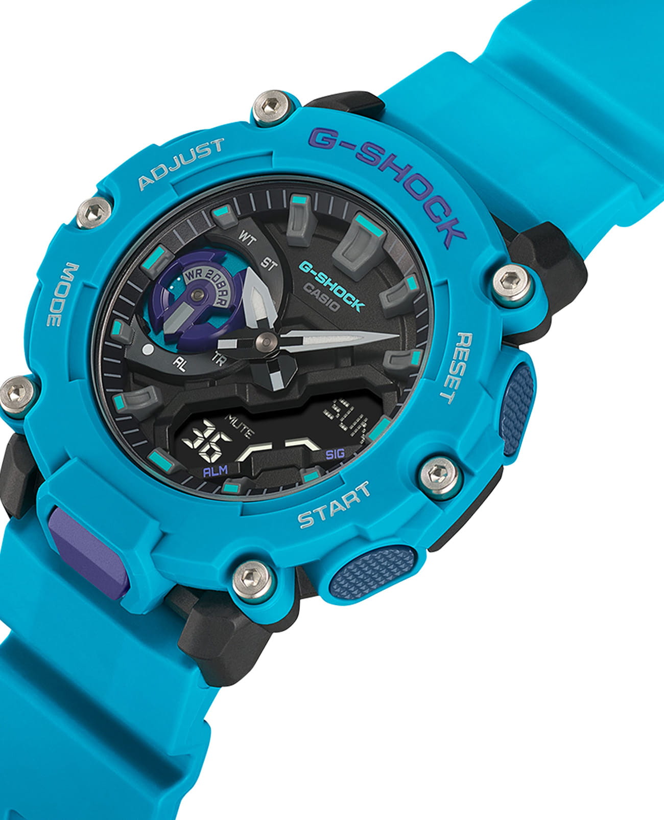 Надежные часы с глубоким и объемным циферблатом прекрасно подойдут для любителей активного образа жизни. Мужские наручные часы Casio G-Shock GA-2200-2A, кварцевый механизм с высокой точностью. Класс водозащиты: 200 метров, позволит плавать, нырять и заниматься другими водными видами спорта. Корпус часов изготовлен из пластика и карбона. Новая серия часов со структурой Carbon Core GuardCarbon Core Guard Новейшая структура корпуса, разработанная Casio. Полиуретановая пластина дополнительно усилена карбоновыми вставками, что придаёт специальную защиту от механических повреждений. Карбон отличается лёгкостью и прочностью.. Крупный пластиковый ударопрочный корпусУдаропрочный корпусМеханизм заключён в корпус, выполненный из современных материалов, устойчивых к ударам, механическим повреждениям и падению с высоты: инновационный пластик, карбон, нержавеющая сталь, титан. с карбоновыми волокнами более прочный и, в то же время, более легкий. Этот же материал защищает внутренний модуль от повреждений и деформаций при ударах. Двойная светодиодная подсветкаСветодиодная подсветкаСветодиодная или LED-подсветка обеспечивает появление яркого холодного свечения за счёт LED-элементов - маленьких лампочек. Они потребляют минимальное количество энергии, чаще всего можно встретить 1 светодиод, в нижней части циферблата. позволяет видеть в полной темноте не только аналоговый циферблат, но и цифровой дисплей. Послесвечение. Цвет подсветки: белый. Подсветка NeobriteПодсветка NeobriteИспользование светонакопительных составов на основе сульфида цинка или алюмината стронция, яркий свет можно наблюдать на протяжении 6-10 часов после «зарядки» часов около источника света. обеспечивает длительное послесвечение в темноте даже после кратковременного нахождения на свету. 12-ти и 24-х часовой формат времени. СекундомерСекундомерСекундоме́р — прибор, способный измерять интервалы времени с точностью до долей секунды. с двумя точностями показаний: 1/100с (до 1ч) и 1с (после 1ч) и временем измерения 24ч. Сплит-хронографСплит-хронографИспользуется для измерения продолжительности нескольких временных отрезков, начинающихся одновременно, а заканчивающихся в разное время.. ТаймерТаймерОтсчитывает секунды в обратном направлении в заданном интервале времени. обратного отсчета от 1с до 24ч. Мировое времяМировое время Полезное часовое усложнение, отображающее время в основных городах и известных областях по всему миру, оно связано с часовыми поясами, удобно для путешественников и бизнесменов. – 48 городов (31 часовой пояс), всемирное координированное время (UTCUTCВсемирное кординационное время, не имеющее привязки к географическому положению Гринвича, основывается на атомном отсчёте времени. Регулировка времени осуществляется более точно, чем устаревшее GMT.