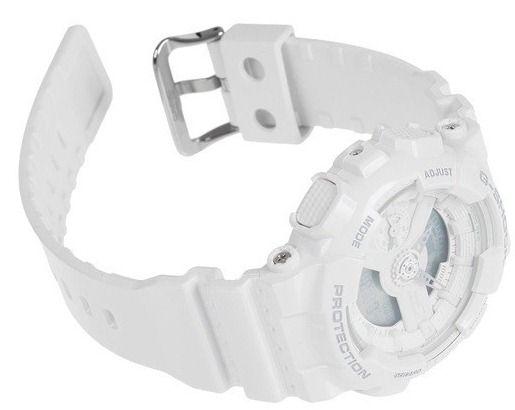 Описание часов Casio GMA-S110CM-7A1 - стильные женские японские наручные часы. Корпус и браслет часов сделаны из полимерного пластика белого цвета. Минеральное стекло, устойчивое к появлению царапин. Часы GMA-S110CM-7A1 снабжены множеством дополнительных функций - секундомер, таймер обратного отсчета, календарь, полностью автоматическая подсветка с автоматической регулируемой автоматизацией. Ежечасный сигнал, повтор сигнала будильника, мировое время. Водонепроницаемость часов до 200 метров (возможны занятия дайвингом). Особый шарм часам придает 3D дизайн - углубленные, объемные индексы и стрелки из матового цвета стали.