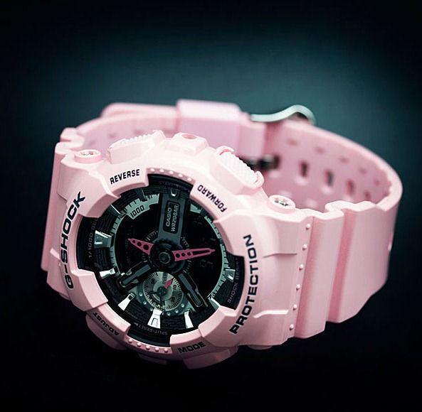 Противоударные женские наручные часы в стильном модном исполнении. Кварцевые часы круглой формы с черным фоном циферблата. Корпус из пластика с минеральным стеклом прочно удерживается на руке пластиковым браслетом розового цвета. Часы GMA-S110MP-4A2 снабжены множеством дополнительных функций - секундомер, таймер обратного отсчета, календарь,  кроме того в часах есть автоматическая LED-подсветка дисплея, которая активируется как при нажатии кнопки, так и при повороте/наклоне руки. Ежечасный сигнал, повтор сигнала будильника, функция перемещения стрелок. Элемент питания в часах CR1220 расчитан на работу в течении 3 лет. Защита от магнитных полей. Водонепроницаемость часов от 200 метров (возможны занятия дайвингом).