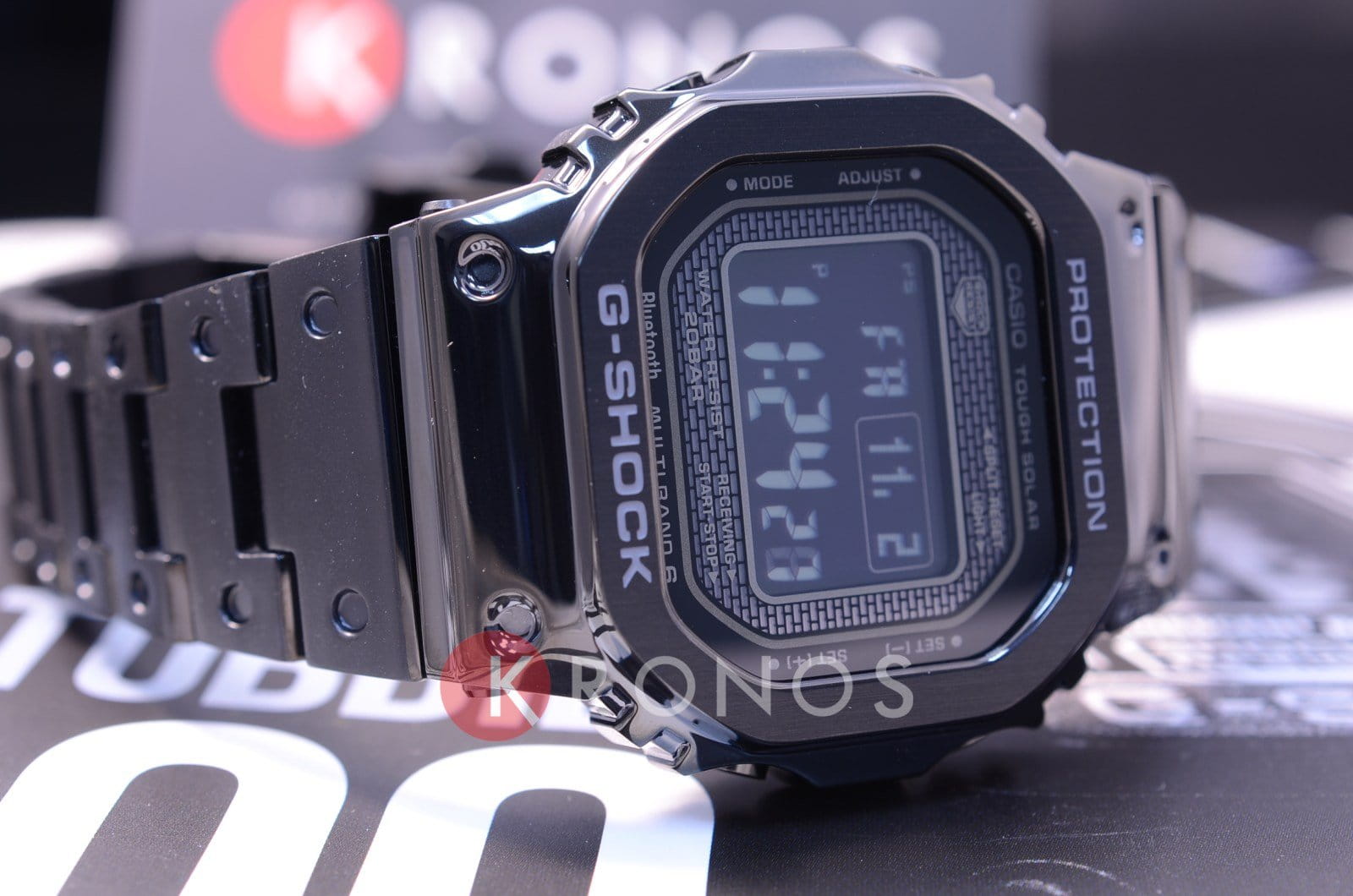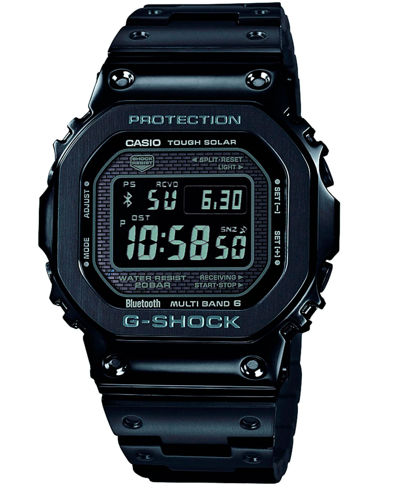 Премиальные наручные часы строгой чёрной расцветки, напоминающие ретро-модели от Casio, имеют противоударный корпусУдаропрочный корпусМеханизм заключён в корпус, выполненный из современных материалов, устойчивых к ударам, механическим повреждениям и падению с высоты: инновационный пластик, карбон, нержавеющая сталь, титан., благодаря безупречной полировке он выглядит хромированным. Безель имеет естественную стальную структуру. Слой материала Alpha Gel® обеспечивает дополнительную устойчивость к ударам и повреждениям, завинчивающаяся задняя крышка имеет защитное DLC-покрытиеDLC-покрытиеDiamond like carbon - одно из лучших видов покрытия, представляющее собой углерод с алмазными свойствами. На поверхность материала наносятся распавшиеся молекулы углерода, превращающиеся в плёнку из алмазоподобных связей, которая перенимает твёрдость алмаза.. Модель оснащена богатым функционалом: BluetoothBluetoothСовременная технология, позволяющая синхронизировать часы с телефоном и переносить данные. Часы с Bluetooth расширяют возможности вашего смартфона и делают его использование ещё более удобным., таймер, функция поиска телефона, UTCUTCВсемирное кординационное время, не имеющее привязки к географическому положению Гринвича, основывается на атомном отсчёте времени. Регулировка времени осуществляется более точно, чем устаревшее GMT.
