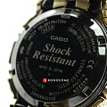 Премиальные наручные часы золотистой расцветки, напоминающие ретро-модели от Casio, имеют противоударный корпусУдаропрочный корпусМеханизм заключён в корпус, выполненный из современных материалов, устойчивых к ударам, механическим повреждениям и падению с высоты: инновационный пластик, карбон, нержавеющая сталь, титан., благодаря безупречной полировке он выглядит хромированным. Безель имеет естественную стальную структуру. Слой материала Alpha Gel® обеспечивает дополнительную устойчивость к ударам и повреждениям, завинчивающаяся задняя крышка имеет защитное DLC-покрытиеDLC-покрытиеDiamond like carbon - одно из лучших видов покрытия, представляющее собой углерод с алмазными свойствами. На поверхность материала наносятся распавшиеся молекулы углерода, превращающиеся в плёнку из алмазоподобных связей, которая перенимает твёрдость алмаза.. Модель оснащена богатым функционалом: BluetoothBluetoothСовременная технология, позволяющая синхронизировать часы с телефоном и переносить данные. Часы с Bluetooth расширяют возможности вашего смартфона и делают его использование ещё более удобным., таймер, функция поиска телефона, UTCUTCВсемирное кординационное время, не имеющее привязки к географическому положению Гринвича, основывается на атомном отсчёте времени. Регулировка времени осуществляется более точно, чем устаревшее GMT.