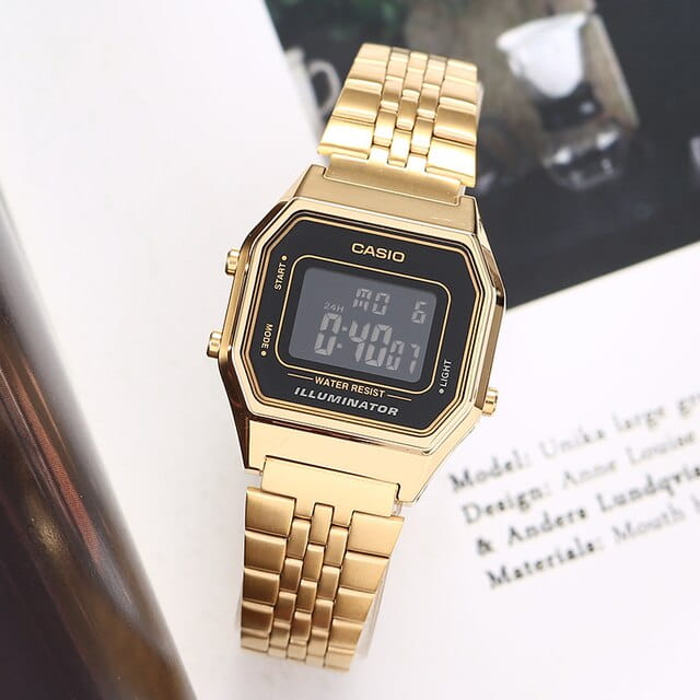 Электронные часы Casio Vintage LA680WGA-1B из нержавеющей стали с IP-покрытиемIP-покрытиеМетод ионного напыления. Демонстрирует повышенную устойчивость к истиранию, окислению и химическим веществам. Под воздействием высокого давления и температуры около 1500°C молекулы металла надёжно соединяются с частицами корпуса часов.. Водостойкость WR 30. Циферблат подсвечивается светодиодомСветодиодная подсветкаСветодиодная или LED-подсветка обеспечивает появление яркого холодного свечения за счёт LED-элементов - маленьких лампочек. Они потребляют минимальное количество энергии, чаще всего можно встретить 1 светодиод, в нижней части циферблата.. Цвет подсветки: оранжевый. 12-ти и 24-х часовой формат времени. СекундомерСекундомерСекундоме́р — прибор, способный измерять интервалы времени с точностью до долей секунды. с точностью показаний 1/100с и временем измерения 1ч. Сплит-хронографСплит-хронографИспользуется для измерения продолжительности нескольких временных отрезков, начинающихся одновременно, а заканчивающихся в разное время.. Батарея рассчитана на 5 лет. Водонепроницаемость в соответствии с DIN 8310/ISO 2281. Задняя крышка крепится на 4-х винтах.