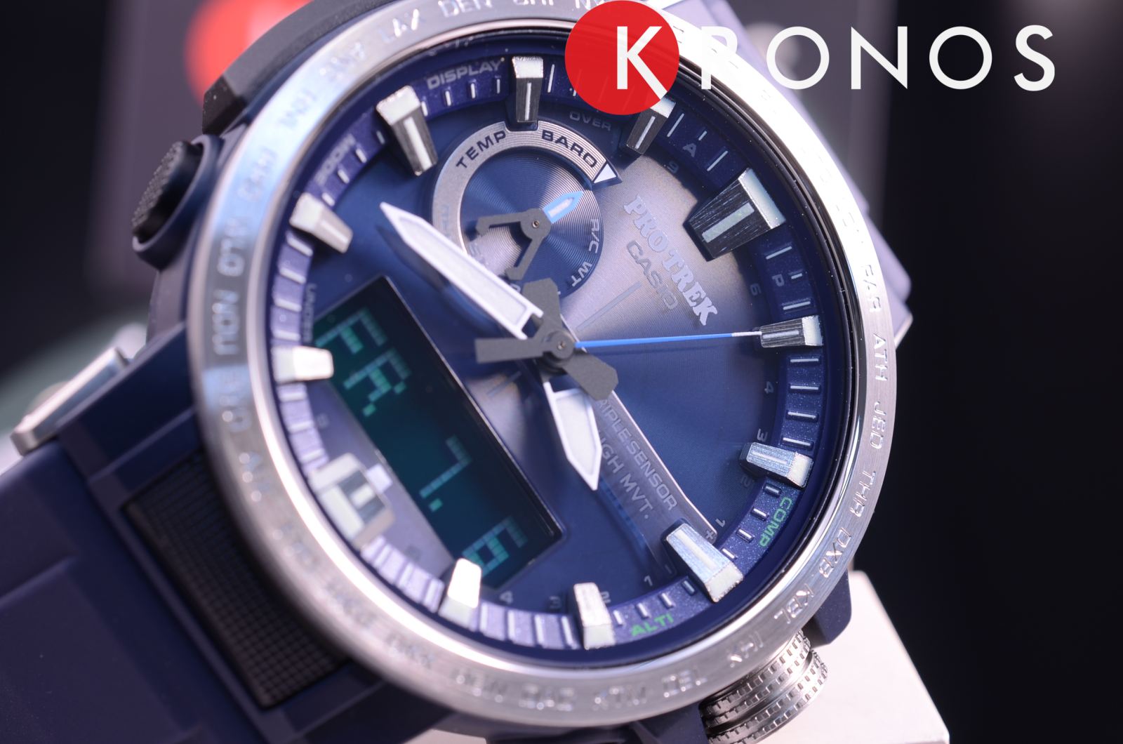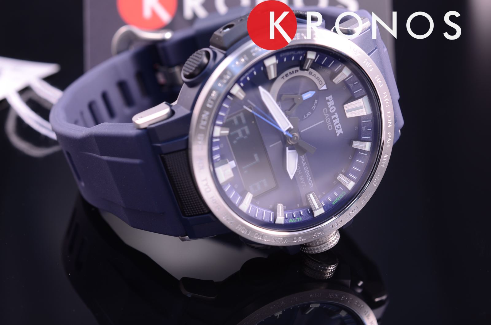 По сравнению с предыдущими моделями линейки Casio PRW-6000 аксессуар получился более тонким и компактным. Наручные часы тёмно-синего цвета выполнены в спортивном стиле, циферблат дополнен контрастными элементами. Ударопрочный корпусУдаропрочный корпусМеханизм заключён в корпус, выполненный из современных материалов, устойчивых к ударам, механическим повреждениям и падению с высоты: инновационный пластик, карбон, нержавеющая сталь, титан. выполнен из полимера, такой материал отлично поглощает силу удара и вибрации. Стильно выглядит силиконовый ремешок, обеспечивающий комфорт при ношении. Питание от солнечной энергии , есть индикатор уровня заряда батарейки. Минеральное стекло. Водозащита 10 бар. Функционал: барометр, высотомер с памятью данных, таймер, термометр, будильник, мировое времяМировое время Полезное часовое усложнение, отображающее время в основных городах и известных областях по всему миру, оно связано с часовыми поясами, удобно для путешественников и бизнесменов. , компас. Светодиодная подсветкаСветодиодная подсветкаСветодиодная или LED-подсветка обеспечивает появление яркого холодного свечения за счёт LED-элементов - маленьких лампочек. Они потребляют минимальное количество энергии, чаще всего можно встретить 1 светодиод, в нижней части циферблата. экрана, стрелки с люминесцентным покрытиемЛюминесцентное покрытиеПозволяет считывать показания времени в темноте. Производители наносят на стрелки, часовые индексы, безель или поверхность циферблата светонакопительный состав, дающий холодное свечение.. Габариты: 50,5 x 47,2 x 13,3 мм.