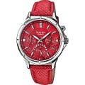 Современные женские наручные часы, выполненные в fashion стиле. Кварцевые часы с элементом питания SR920SW. Круглый корпус часов выполнен из стали. Циферблат украшен кристаллами Swarovski и золотыми стрелками. Водонепроницаемость часов до 50 метров, минеральное стекло, устойчивое к царапинам. Часы прочно удерживаются на руке красным ремешком из натуральной кожи.