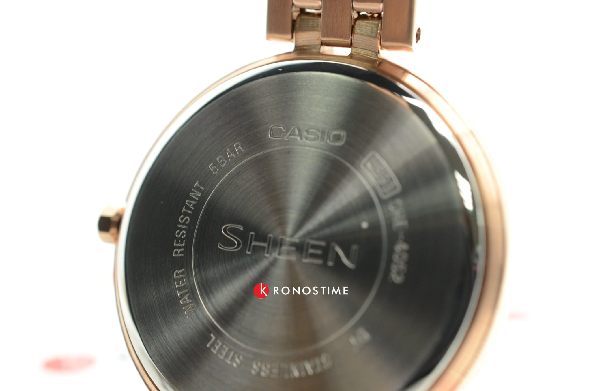 Привлекательный экстерьер - это далеко не единственное преимущество Casio Sheen Часы могут отображать время, они способны погружаться в воду на глубину до 50 метров, а стильный циферблат, украшенный камнями от Swarovski, надежно укреплен минеральным стеклом, защищающим часы от практических любых механических повреждений