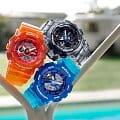 Противоударные японские женские часы Casio Baby-G BA-110JM-2A, кварцевый механизм с высокой точностью. Класс водозащиты: 100 метров, позволит плавать, нырять и заниматься другими водными видами спорта. Корпус часов изготовлен из пластика, прозрачного цвета.