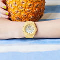 Причудливые детали и игривый дизайн в солнечно-желтом цвете обязательно скрасят ваш день. Цветовая градация на циферблате напоминает о меняющемся летнем пляжном пейзаже с заходом солнца. Указательные метки, обработанные методом напыления из паровой фазы металла, сияют, как жемчужины и морские раковины океанских сокровищ, а минутная стрелка напоминает хвост русалки. Добавьте пляжный стиль в свой гардероб и начинайте лето с чистого листа.