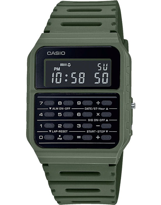 Аксессуар серии Vintage предстаёт в оригинальным формате, олдскульный внешний вид оценят любители ретро-облика вещей. Наручные часы зелёного оттенка оснащены 8-разрядным калькулятором для совершения различных математических операций. Есть базовые усложнения, помогающие в решении повседневных задач: хронографХронографФункция позволяет измерять отрезки времени с особой точностью: часы, минуты, секунды. Верным признаком хронографа является наличие на циферблате 3 дополнительных окошек-счётчиков., будильник, секундомер, отображение мирового времениМировое время Полезное часовое усложнение, отображающее время в основных городах и известных областях по всему миру, оно связано с часовыми поясами, удобно для путешественников и бизнесменов. , вечный календарьВечный календарьКлассическое часовое усложнение, представляющее собой календарь, рассчитанный на несколько лет вперёд (стандартно – до 2099 года). Определяет текущую дату, день недели, месяц. до 2099 года. Часы Vintage Mannish Color сделаны из полимерного материала, устойчивого к повреждениям. В основе работы – японский кварцевый механизм, получающий энергию от элемента питания. 1 батарейка рассчитана на 5 лет службы. Циферблат дополнен прочным акриловым стеклом. Габариты: 43,2 x 34,4 x 8,2 мм.