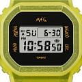 Часы выполнены в узнаваемом прямоугольном силуэте . В комплекте — два корпуса : полупрозрачный желтый и черный, а также сменный ремешок для создания индивидуального образа. Подписи режимов на циферблате выполнены от руки артистом на испанском языке, а фирменный элемент «MA’G» в виде молнии стал главным дизайнерским акцентом.