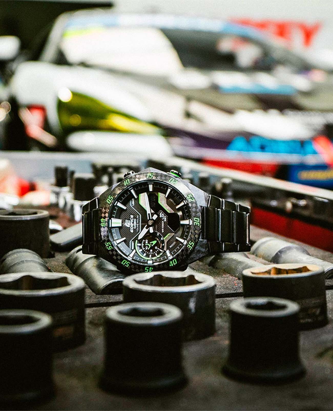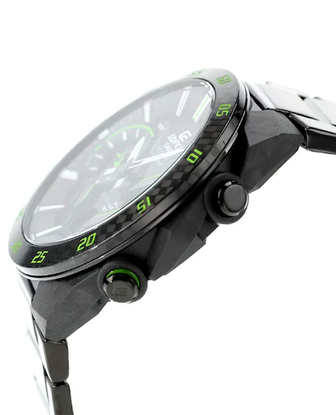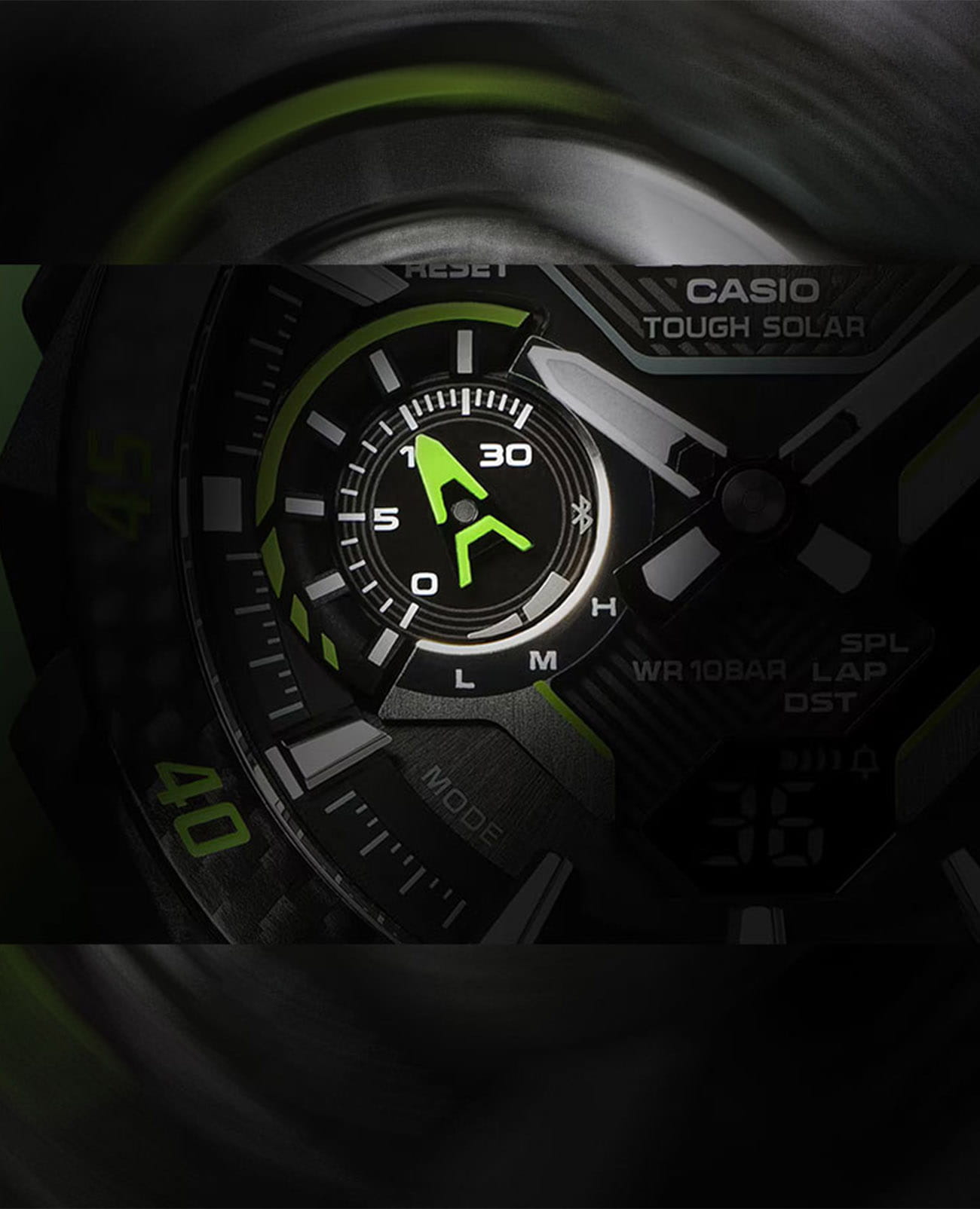 Модель Casio Edifice ECB-2200RC-1A3 из коллекции Edifice сочетает передовые технологии и динамичный спортивный стиль. Корпус выполнен из углеродного волокнаCarbon Core Guard Новейшая структура корпуса, разработанная Casio. Полиуретановая пластина дополнительно усилена карбоновыми вставками, что придаёт специальную защиту от механических повреждений. Карбон отличается лёгкостью и прочностью., усиленного смолой, что обеспечивает прочность и легкость и стальной безельБезельВнешний ободок, закрепляющий стекло. В спортивных часах так называется поворотное кольцо с делениями на циферблате, выполняет роль таймера – замеряет отрезки времени на шкале. Неподвижный безель – элемент декора. Однонаправленно вращающийся безель на дайверских часах позволяет фиксировать моменты погружения и выныривания на поверхность. с PVD-покрытиемPVDУльтратонкое покрытие наносится в технике вакуумного напыления, сочетает в себе нитрид титана особой прочности со слоем золота или оксида хрома. Несёт в себе декоративную или защитную функцию.. Циферблат с металлическими метками и объемными элементами подчеркивает автоспортивный характер модели. Часы оснащены Bluetooth®-синхронизациейBluetoothСовременная технология, позволяющая синхронизировать часы с телефоном и переносить данные. Часы с Bluetooth расширяют возможности вашего смартфона и делают его использование ещё более удобным., позволяющей автоматически корректировать время, управлять мировым временемМировое время Полезное часовое усложнение, отображающее время в основных городах и известных областях по всему миру, оно связано с часовыми поясами, удобно для путешественников и бизнесменов. и передавать данные секундомера через приложение CASIO WATCHES. Солнечная батарея Tough SolarTough SolarТехнология основана на подзарядке аккумулятора от источника солнечного света, специальная панель улавливает солнечные лучи и преобразует их в энергию для работы часов. Достаточно пары минут нахождения на солнце для функционирования часов в течении суток. преобразует свет в энергию, обеспечивая бесперебойную работу. Дополнительные функции включают таймер обратного отсчетаТаймерОтсчитывает секунды в обратном направлении в заданном интервале времени. с индикатором на отметке 9 часов, будильникБудильникБуди́льник — часы, в заданный момент времени подающие звуковой, световой и/или в редких случаях другой сигнал., секундомерСекундомерСекундоме́р — прибор, способный измерять интервалы времени с точностью до долей секунды. и двойную светодиодную подсветку Super IlluminatorСветодиодная подсветкаСветодиодная или LED-подсветка обеспечивает появление яркого холодного свечения за счёт LED-элементов - маленьких лампочек. Они потребляют минимальное количество энергии, чаще всего можно встретить 1 светодиод, в нижней части циферблата. для удобного чтения показаний в темноте. Стальной браслет с IP-покрытиемIP-покрытиеМетод ионного напыления. Демонстрирует повышенную устойчивость к истиранию, окислению и химическим веществам. Под воздействием высокого давления и температуры около 1500°C молекулы металла надёжно соединяются с частицами корпуса часов. на раскладной застёжкеРаскладная застёжкаТакой тип застёжки используется только на браслетах из металла. Она никогда не раскрывается полностью, происходит разделение на 2 и более частей. Раскладывающая зас