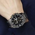 Кварцевый японский механизм Miyota. Точность хода не хуже -10 +15 сек./в месяц. Часы оснащены функцией хронографа, с точностью 1/10с и временем измерения 1ч. Циферблат черного цвета с контрастными элементами дизайна. Флюорисцентное напыление на стрелках и дисплее часов позволяет отчетливее видеть каждую цифру. Корпус и браслет выполнены из нержавеющей стали с IP покрытием чёрного цвета. Минеральное стекло устойчиво к появлению царапин. Водонепроницаемость 100М. В часах можно плавать. Степень водонепроницаемости не является величиной, эквивалентной функциональной рабочей глубине.